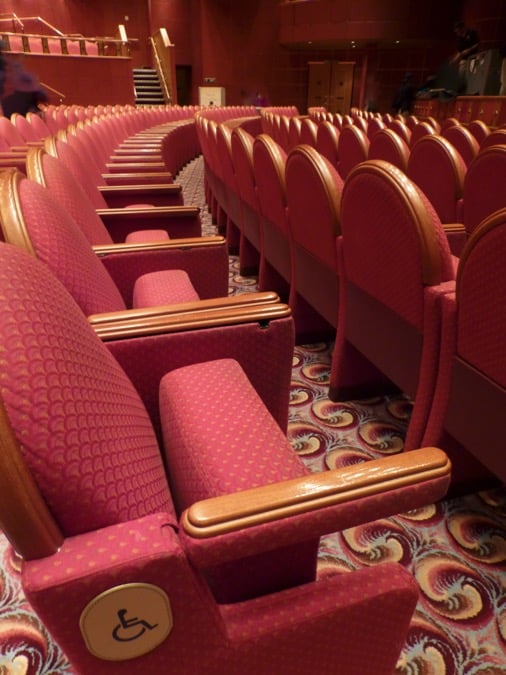Het theater daarentegen was kleiner dan ik verwacht had. Vooraan het schip spreidt het zich uit op het 5e en 6e dek. Princess zorgt bij langere reizen naast de gebruikelijke theatervoorstellingen ook in het theater voor interessante lezingen.