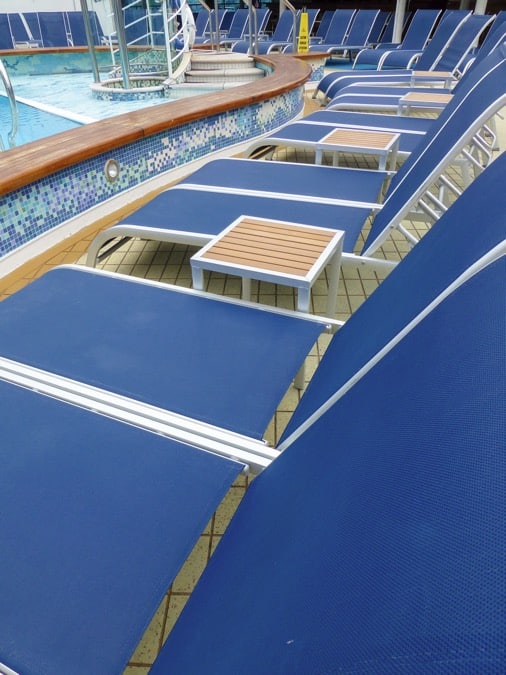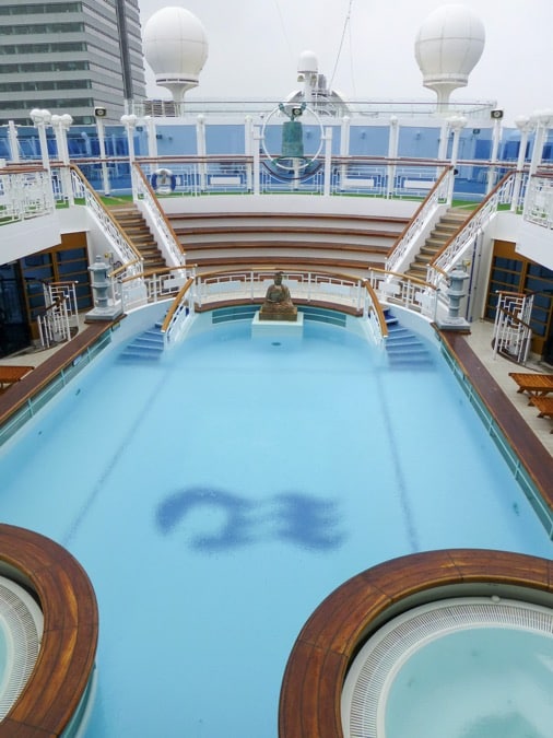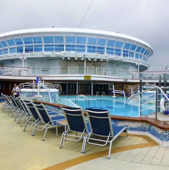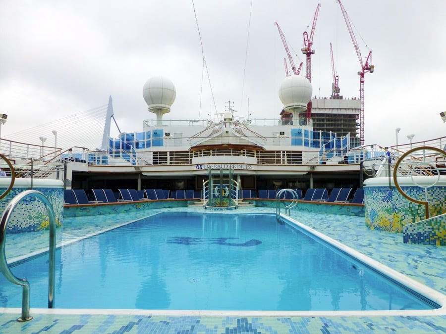 Een van de nieuwigheden toen het schip in de vaart kwam, is het filmdoek bij een van de zwembaden van de Emerald Princess. Op het filmscherm worden films vertoond terwijl je relaxt in een ligstoel zit. Een heerlijk idee! Inmiddels hebben meer cruisemaatschappijen dit concept omarmd. Naast het zwembad dat te vinden is bij het filmdoek, zijn er nog drie zwembaden. Eentje op het achterdek, prachtig gelegen. Het grootste zwembad bevindt zich in het midden van schip met de nodige whirlpools.