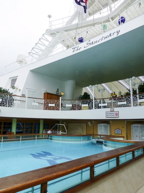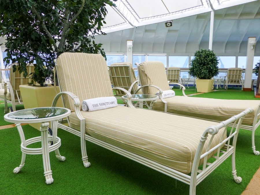 Indrukwekkend was het gedeelte van het schip dat de Sanctuary genoemd wordt. Een zwembad voor volwassenen en een dekgedeelte met te reserveren luxueuze ligbedden en bijbehorende drankjes. De spa en fitness liggen om de hoek.