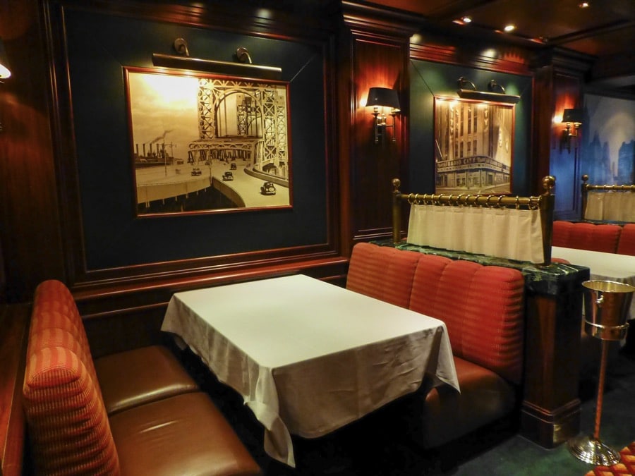 Het buffetrestaurant deed verrassend fijn aan. Uiteraard waren er veel tafels en stoelen, maar door de opstelling en afscheidingen vond ik het toch gezellig zitten. De hoofdrestaurants (2 stuks) weerspiegelen, net als alle ruimtes op het schip, de intimiteit van het schip. Geen twee-dekken hoog hoofdrestaurant maar twee (één-laagse) restaurants die elk overzichtelijk zijn.