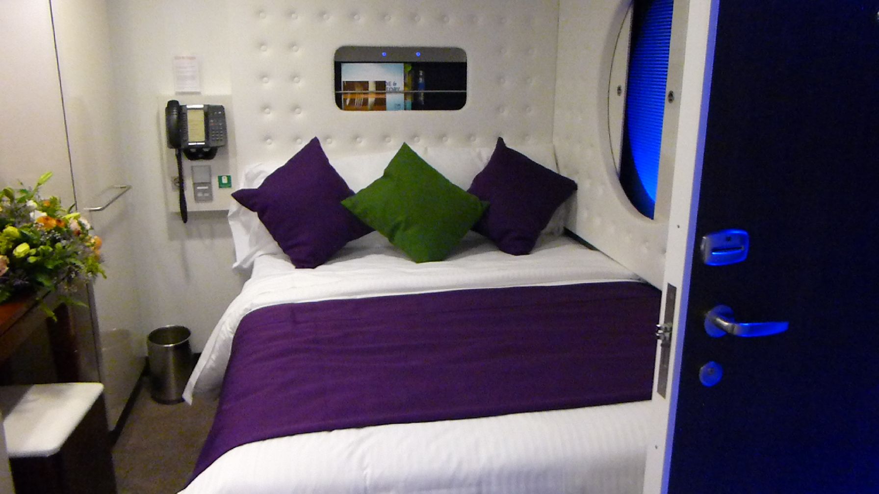 Aan boord van de Norwegian Breakaway vonden wij de mooiste hut voor de solo reiziger: de solo hutten, inclusief de aparte lounge voor solo reizigers die daarbij hoort. De kleine binnenhutten (9 m2!, 59 stuks) zijn van alle gemakken voorzien zoals een klein bureau, douche en toilet. Het raam kijkt uit op de gang en heeft twee schuifpanelen zodat je het kunt sluiten.