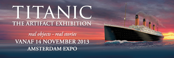 Op 15 april 1912 kwam de R.M.S. Titanic in aanvaring met een ijsberg, waarna het grootste stoomschip ter wereld zonk. Vanaf 14 november 2013, ruim honderd jaar na de fatale aanvaring, is in Amsterdam EXPO de indrukwekkende tentoonstelling Titanic: The Artifact Exhibition te zien. Authentieke artefacten, die bij diverse expedities uit het wrak in de diepe wateren van de Noordelijke IJszee werden geborgen, nemen het publiek mee terug in de tijd. Zij vertellen het verhaal van het iconische schip en geven haar passagiers en bemanning een gezicht. De ticketverkoop voor de expositie is dinsdag 20 augustsus 2013 gestart via www.amsterdamexpo.nl. Ruim 25 miljoen mensen bezochten deze indrukwekkende expositie in wereldsteden als Chicago, Los Angeles, Londen en Parijs.