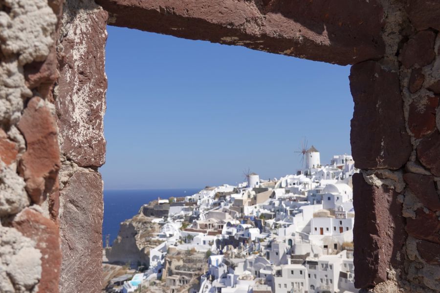 Santorini eiland vormde zich lang geleden; de Middellandse zee stroomt nu in de krater van een fontein. De kraterrand kan je beklimmen met ezeltjes of een kabelbaan. Santorini is het meest unieke eiland waar je met een cruiseschip kan aankomen.
