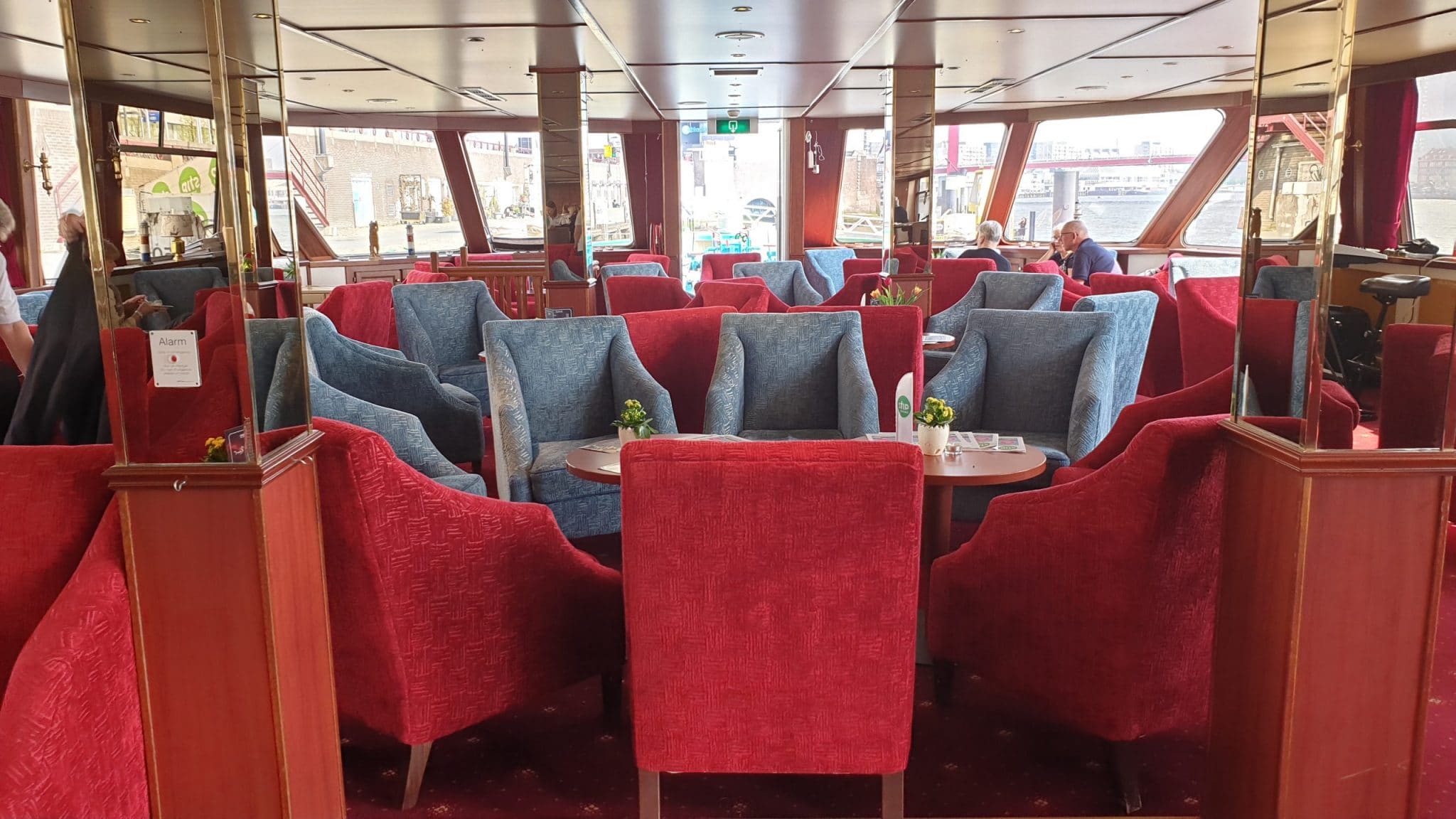 De receptie heeft een modern nieuw uiterlijk gekregen en bevindt zich direct bij de ingang van het schip, op het bovendek. Dit is overigens de middelste van de drie. Daarboven zit het Zonnedek en eronder het Benedendek. Fijn is dat alle drie de dekken bereikbaar zijn door een lift. Het zonnedek heeft mooie stoelen en ligbedden. Op de foto’s zie je ook de fietsen staan die je per dag kunt huren om er in een haven op uit te trekken.
