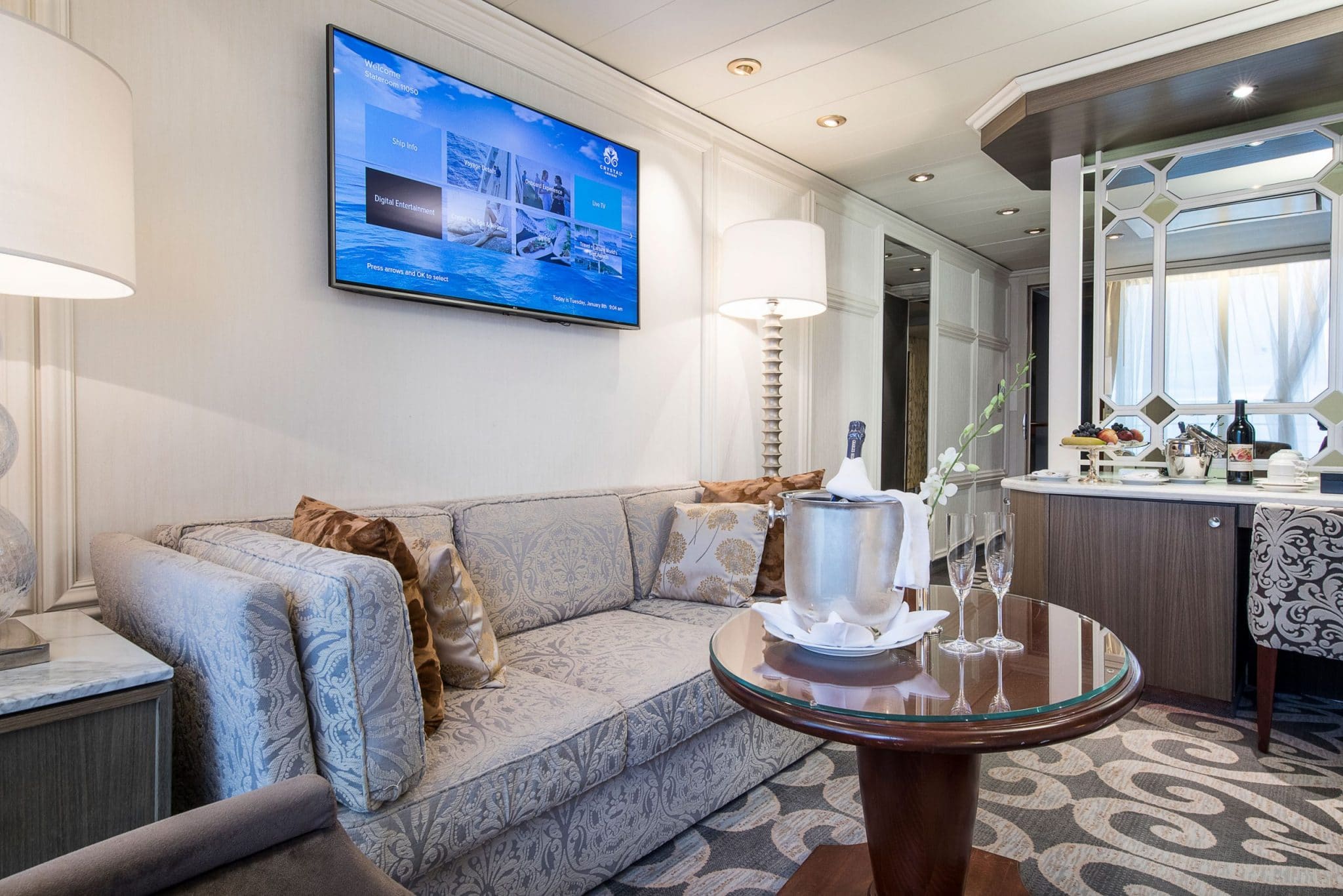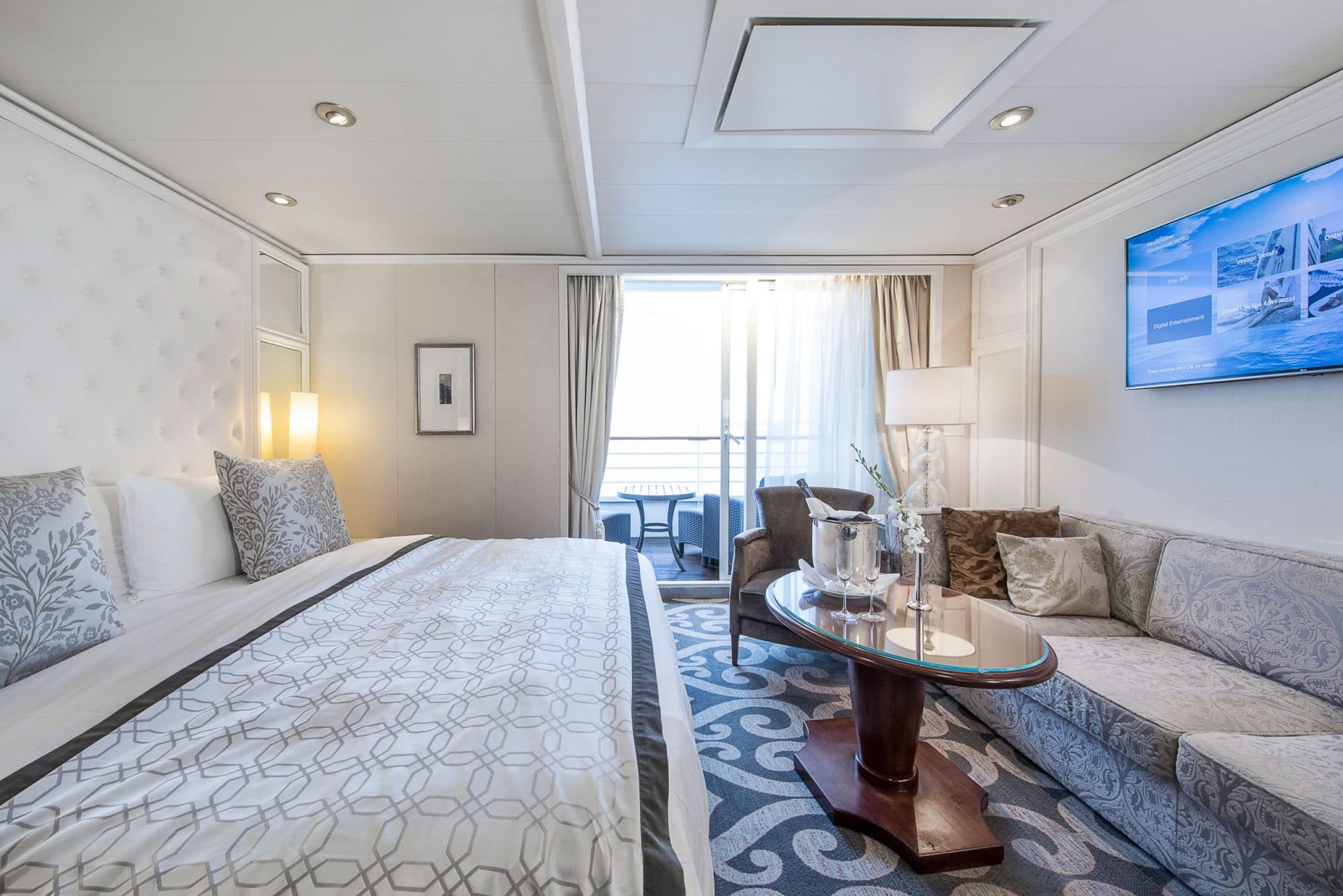 Crystal Cruises heeft in november 2018 een opvallende move gemaakt: tijdens de renovatie van de Crystal Serenity zijn hutten samengevoegd. Daarmee is het passagiersaantal gedaald van 1070 naar 980. Het aantal personeelsleden (655) is overigens gelijk gebleven waarmee de crew/gast ratio 1 op 1,5 wordt. Van liefst 56 balkonhutten zijn 36 nieuwe Seabreeze Penthouses en 2 Penthouse Suites op dek 10 gemaakt, waarvan hieronder een aantal impressies.