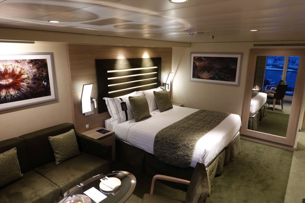De Aurea Suite ligt op een hoek aan de voorkant van het schip. Ze variëren in grootte van 25-39 m2. Je hebt een ruime woonkamer en een masterbedroom. Daarnaast is er een aparte inloopkast. Op het balkon heb je een whirlpool, twee ligbedden en een tafeltje met twee stoelen. Overigens heeft de Aurea Suite een ‘gewoon’ formaat badkamer met douche. Het grote voordeel van een Aurea Suite is dat je automatisch een Aurea Experience ontvangt; een drankpakket, toegang tot de Spa en een exclusief zonnedek met whirlpool op dek 19.