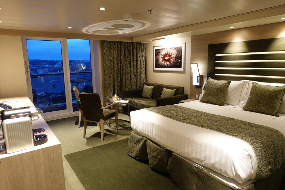 De Duplex Suites (8 stuks) liggen aan de voorkant van het schip. Op de begane grond bevindt binnen zich een rondzitbank, een sofabed en bureau. Buiten op het balkon staan een privé bubbelbad en twee ligbedden. Op de bovenverdieping is het vaste tweepersoonsbed met tv, inloopkast en badkamer met bad. Ook op de benedenverdieping staan een badkamer (met douche) en inloopkast tot je beschikking. Vanaf deze categorie zie je dat in de kamers groen marmer verwerkt is. Kastruimte vind je boven en beneden met een inloopkast.