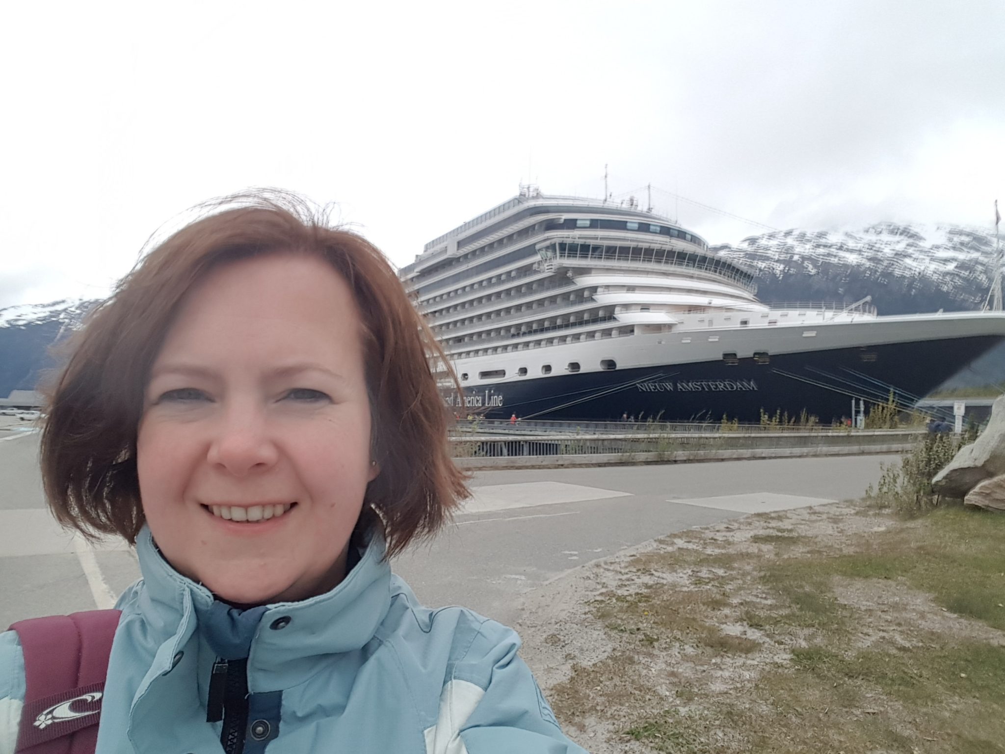 Tja, wat voor kleding neem je mee op een Alaskacruise? Eerlijk gezegd viel het weer me mee in Alaska! Zorg in ieder geval voor een goed paar wandelschoenen, echt goede! Dus niet een paar gympen of sportschoenen, zo voorkom je namelijk dat je valt over de vele stenen en kiezels. Neem verder veel laagjeskleding mee die je al naar gelang het warmer wordt uit kunt trekken. Een lekker vest doet al wonderen aan dek. Wij West-Europeanen hoeven ons geen zorgen te maken over het weer in Alaska. Feitelijk kennen we het al: een regenachtig klimaat (denk aan de herfst bij ons), maar zodra de zon tevoorschijn komt, is het in de zomermaanden gelijk lekker en niet absurd heet. Kijk maar naar de foto’s hieronder: het varieerde per dag wat ik aantrok.