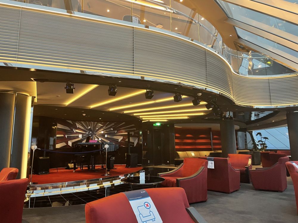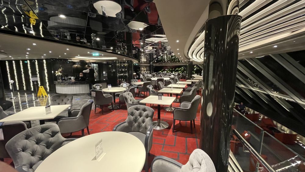 “De drukte in de openbare ruimtes is zeer beperkt. Er worden ook geen grote feesten georganiseerd (zoals de White Party en de Power Flower night). Dit om grote mensenmenigten te voorkomen. Tijdens onze cruise (2 aaneengesloten weken back tot back) waren er in de Yacht Club op het drukste moment 72 gasten aanwezig. Dat is nog geen 50% bezetting. Op zich is het, als je gewend bent aan Yacht Club, geen gemis dat er niet zo veel mensen aan boord zijn. Maar als je op zoek bent naar avonden met volle bars en volop massa-entertainment, dan is dat wellicht een beetje een tegenvaller. Er is een aantal mooie shows in het theater (wel op 1,5 meter en met mondmasker). Ook in de grote Carousel Lounge, waar normaal Cirque Du Soleil haar optreden geeft, is iedere avond wel een mooi concert.