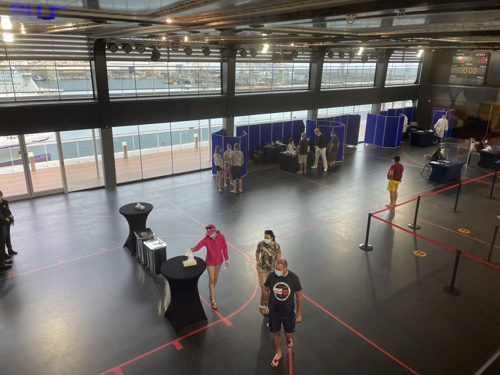 Daarna word je meegenomen naar een ruimte waar MSC nogmaals een tweetal COVID-testen afneemt. Dat is een SWAB test (via de neus en de keel) én een speekseltest.