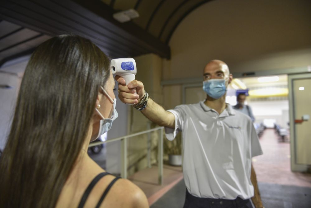 “Iedere dag wordt je temperatuur verplicht gecheckt. Dat doe je in de Yachtclub bij de receptie of bij de ingang van het restaurant. De overige gasten gaan naar de ingang van het buffetrestaurant op dek 15 om daar je tempratuur te laten meten. Ze scannen eerst je cruisecard en daarna meten ze met een scanner op je voorhoofd je temperatuur. Verder is er op vrijdag een verplichte deelname aan een SWAB test. Waarvan je de uitkomst ’s avonds netjes in de hut krijgt; een brief in 4 talen, ondertekend door de boordarts. Mocht je ook nog een PCR test willen, dan kan dat op zaterdag, tegen betaling van €80 per persoon.”