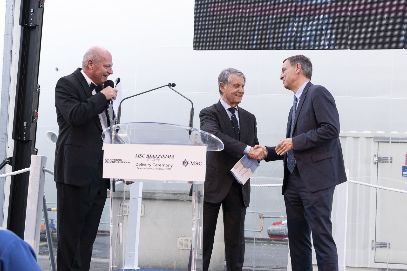 De overdracht is een officieel moment waarop beide partijen, de rederij en de scheepswerf, de overdrachtspapieren ondertekenen. De vlag wordt gehesen en de rederij vaart niet snel daarna haar eerste cruise met gasten.