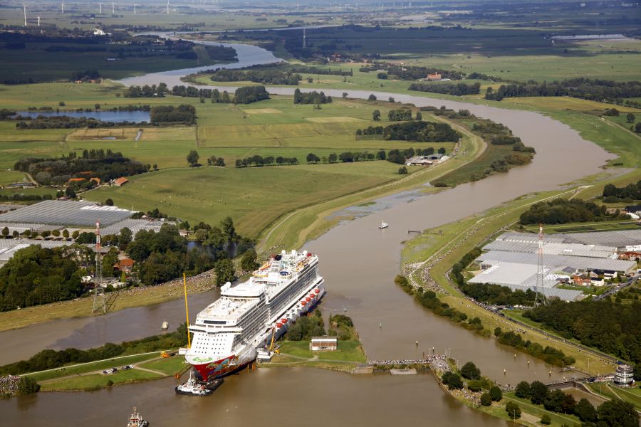 In de tussentijd vindt bij schepen vanaf de Meyer Werft in Papenburg, ook nog de beroemde Eemstocht plaats. Daarbij verplaatst men het schip van Papenburg naar Emden en vervolgens naar Eemshaven in Nederland. Een gigantisch cruiseschip kan niet zomaar elke dag over de Eems; de weersomstandigheden en de getijden moeten precies goed zijn.