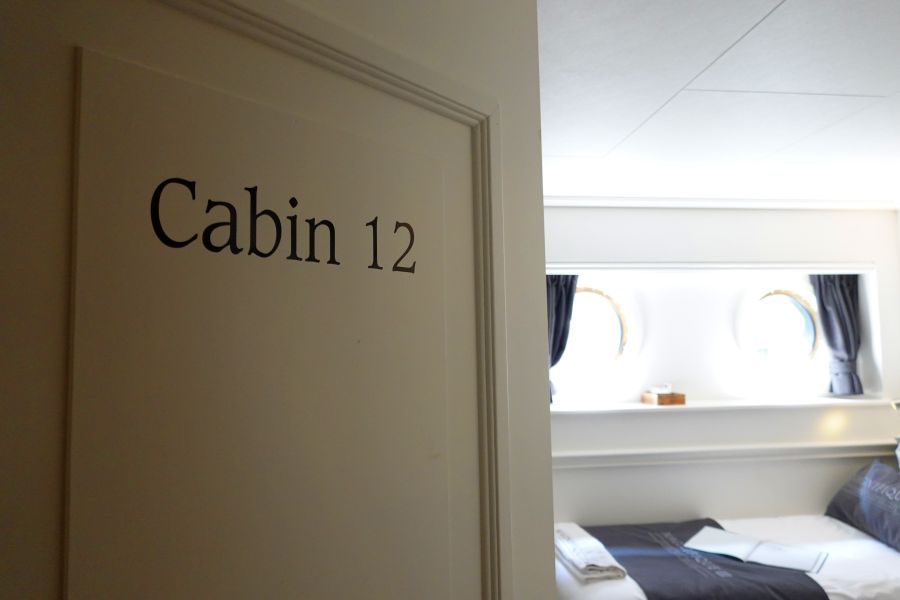 Met haar 67 meter lengte en 7.2 meter breedte is er meer dan genoeg ruimte voor 14 passagiershutten en 2 éénpersoonshutten beneden en 5 suites op het hoofddek. Op het benedendek hebben alle hutten twee patrijspoorten. Deze kunnen niet open, want anders zou het water naar binnen kunnen stromen 😉 De tweepersoonshutten zijn sfeervol ingericht, veel stijlvol wit en hout. Ze hebben een airco/verwarming, aparte luchtventilatie, tv en een badkamer met ruime douche inclusief föhn. Verder staat er een houten kistje met handige accessoires zoals een naaisetje en douchekapje.