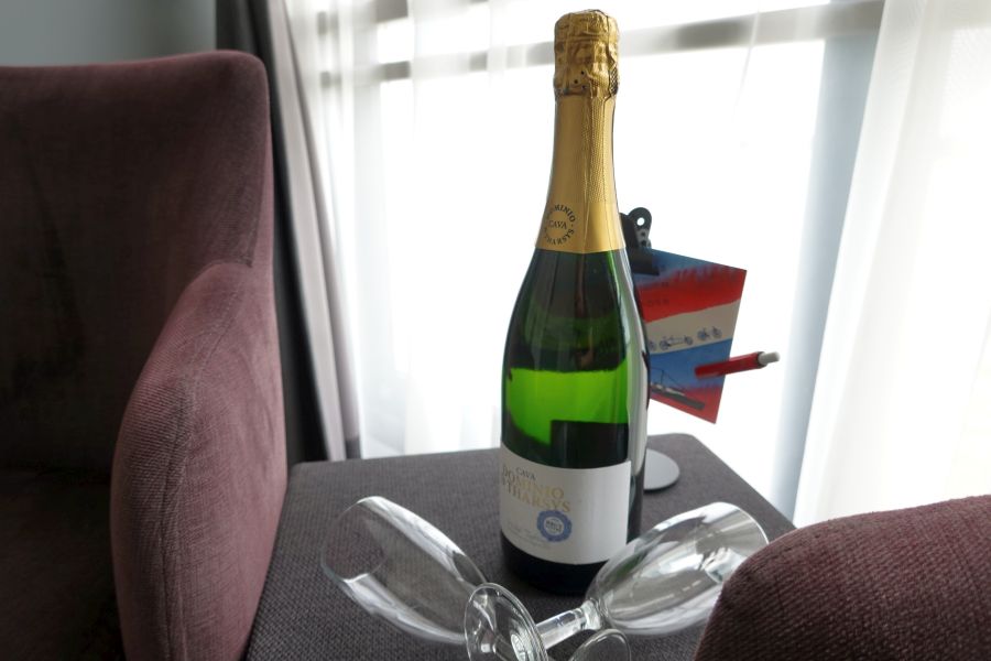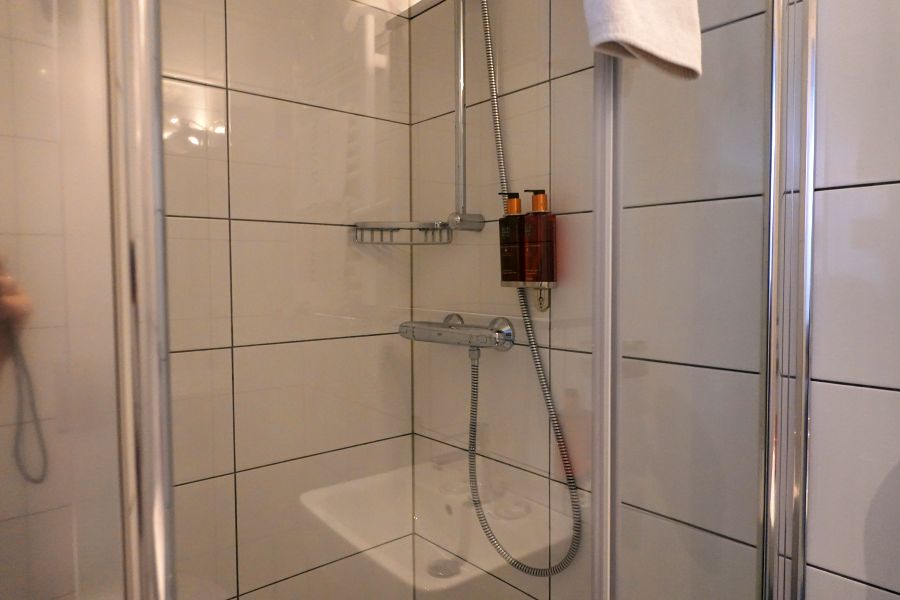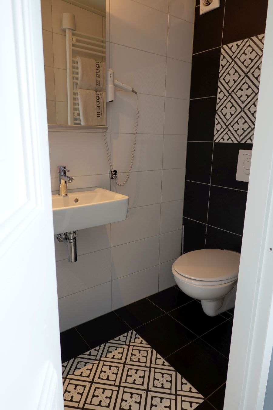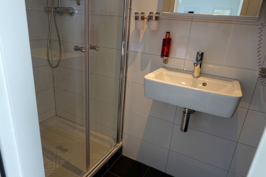 De badkamer heeft net wat meer sierlijke tegeltjes en iets andere achterwanden dan de reguliere hutten op het dek eronder. Ook staan hier de heerlijke Rituals producten tot je beschikking.