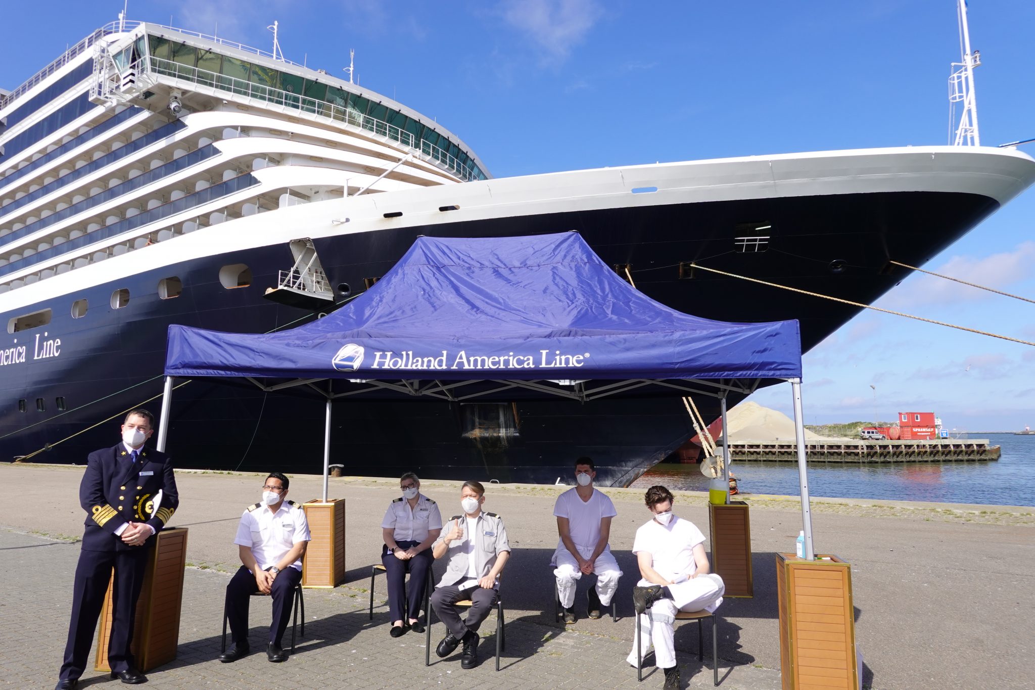 Vandaag ontvangen medewerkers aan boord van Holland America Line’s Oosterdam hun COVID-19 vaccin in IJmuiden. De rederij had samen met de branchevereniging KVNR, GGD en Arbo Unie, ministerie van Infrastructuur en Waterstaat en de haven van IJmuiden de handen ineen geslagen om personeelsleden van de Oosterdam te vaccineren. 110 bemanningsleden van de Oosterdam mogen vandaag één voor één hun Janssen vaccin ontvangen in IJmuiden, in het gebouw van Felison cruiseterminal. Crew die al gevaccineerd zijn, zijn uiteraard uitgezonderd.