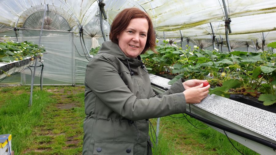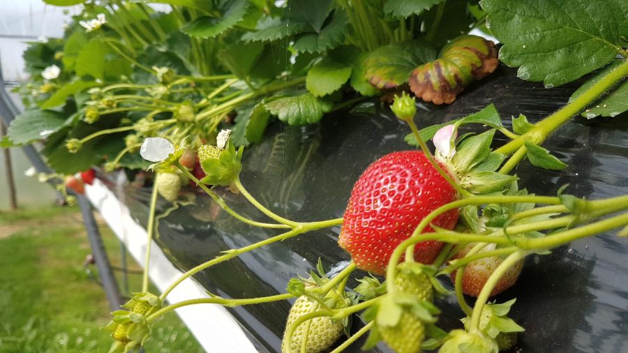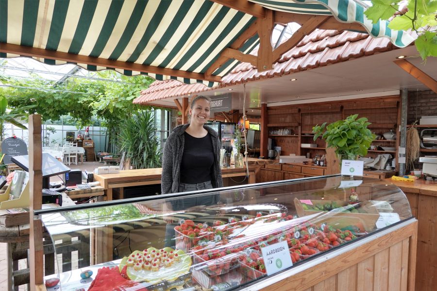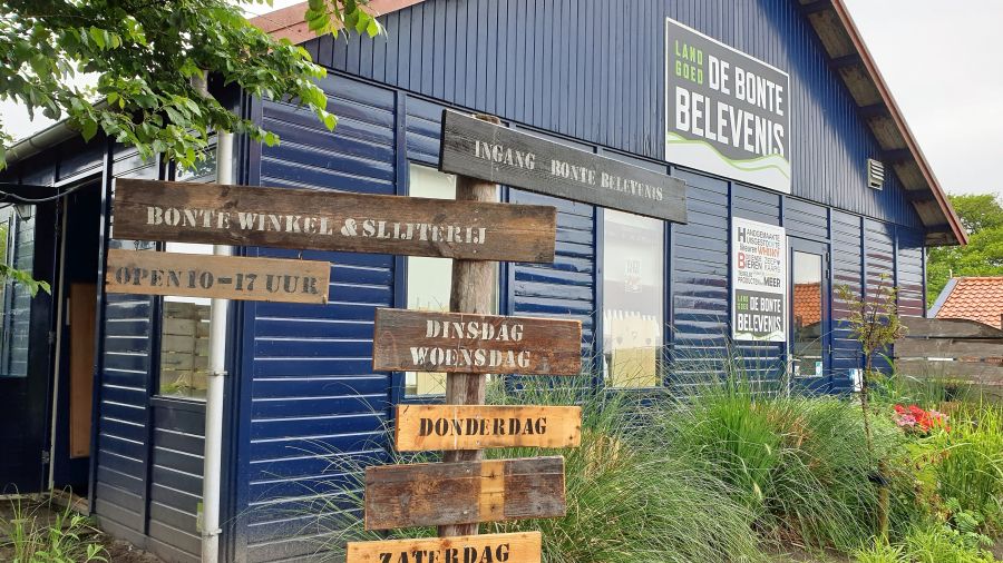 Via het extra knooppunt rijden wij naar de haven van Oudeschild, waar we even genieten van de schepen. Terug naar de route rijden we langs een favoriet van mij – we komen regelmatig op Texel – : de Zelfpluktuin. Deze is vanaf 1 mei 2021 geopend onder de nieuwe naam Voedselbos. Het is een plek waar je met een entreekaartje de gehele dag door fruit kunt proeven. We komen eigenlijk net wat te vroeg in het seizoen. Door het slechte voorjaar zijn eigenlijk alleen de aardbeien te plukken en te verorberen. We nemen een kijkje bij de nieuwe fruitbomen en het kruidendoolhof.