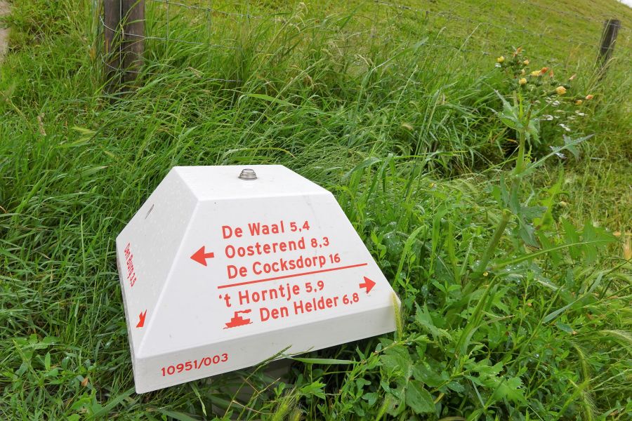 Tussen de buitjes rijden we naar de veerboot van Texel, die ons naar het eiland brengt. We redden ‘m net en met een mondkapje op zijn we 20 minuten later op Texel. Op het programma staat een route van 34 km of 51 km. Deze laatste verkent ook Oosterend en de haven van Oudeschild. Beide routes doen wel Den Burg aan in het midden van het eiland en badplaats De Koog. Wij kiezen voor de korte route, maar met een kleine omweg naar Oudeschild. Doordat we aan de hand van knooppunten fietsen, kan je gemakkelijk een stukje erbij of eraf snoepen.