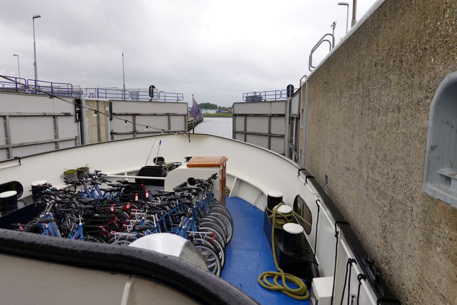Terug naar de Magnifique III gaat het uiteraard met de veerboot. We zijn net als veel anderen uit de groep, rond hetzelfde tijdstip terug. Ik vind het wonderbaarlijk! Een aantal fietst op een e-bike, anderen op een ‘gewone’ fiets. Ondanks de relatief lange afstand en eigen bezigheden langs de route, lukt het iedereen op tijd weer bij de boot te zijn. Reisleider Corry is maar wat blij met de groep. Soms zijn er (internationale) gasten die zelden op de fiets zitten en een gevaar op het fietspad zijn 😉