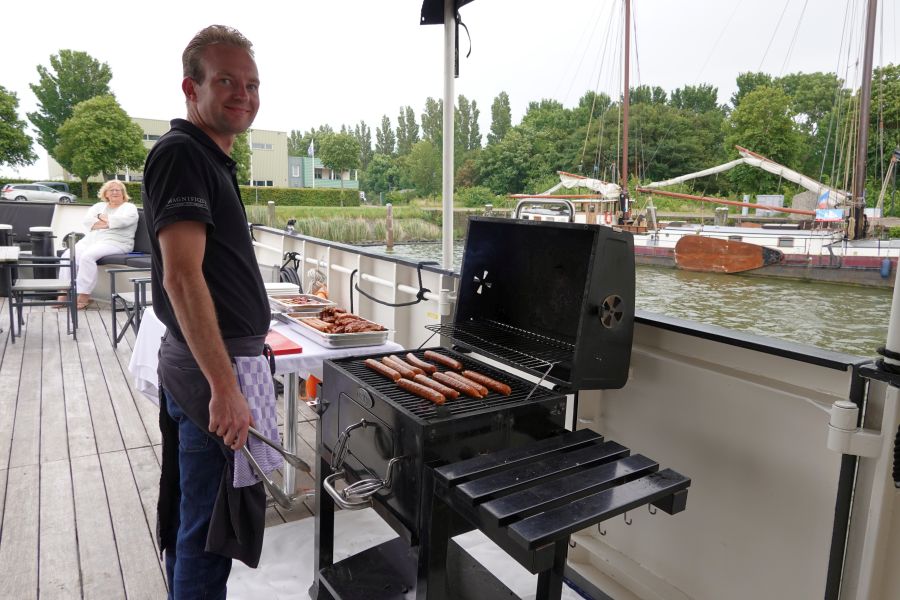 Terug op de Magnifique III genieten we op het achterdek van het heerlijke weer. Niet te geloven dat we twee dagen geleden zijn weggeregend in Bergen. Wij hoeven vandaag in ieder geval niets meer te doen en alleen maar te kijken hoe de barbecue wordt opgestookt door matroos Thomas.