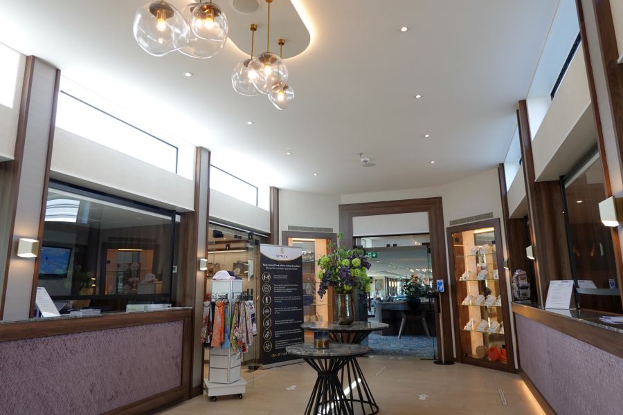 De Annika heeft op de twee bovenste hut-dekken 8 suites, twee aan het begin van de gang en 2 aan het einde van de gang. De suites zijn uiteraard wat groter dan de reguliere hutten, maar niet heel veel ruimer. De opstelling van het bed is richting het raam, zodat je ’s morgens vanuit je bed een prachtig uitzicht hebt. Hieronder zie je suite 336, aan het einde van de gang. De kastenwand is verder gelijk aan de andere kamers met ook een kluisje, leg- en hangkasten, koelkast en Nespresso machine. De badkamer heeft een andere indeling dan de reguliere kamers:Lounge