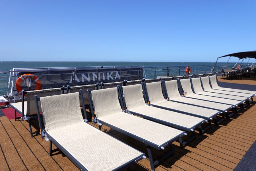 Met haar 135 meter lengte heeft de Annika 90 hutten aan boord voor in totaal 180 passagiers. Dit is een gemoedelijk en overzichtelijk aantal passagiers. De hutten liggen verspreid over drie dekken, waarvan de bovenste 2 dekken de (74) hutten over een Frans Balkon beschikken. Deze bestaat uit drie schuifpanelen waarvan er 2 geheel opzij geschoven kunnen worden. Heerlijk bij het varen! De Annika heeft 8 suites op deze dekken. Het onderste dek heeft kamers met aan de bovenkant twee ramen die niet open kunnen, en ja, dat is om te voorkomen dat er water naar binnen stroomt.Sfeervolle inrichting