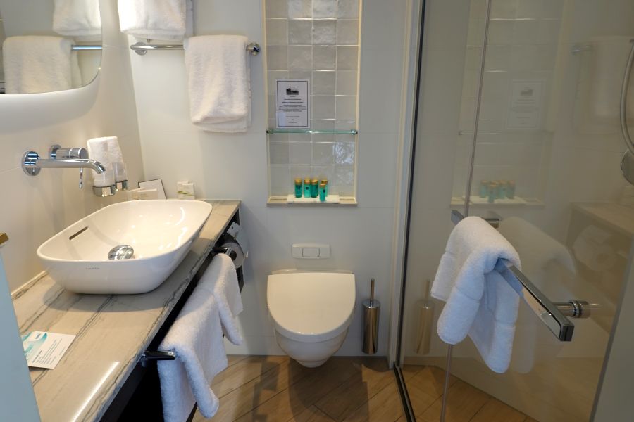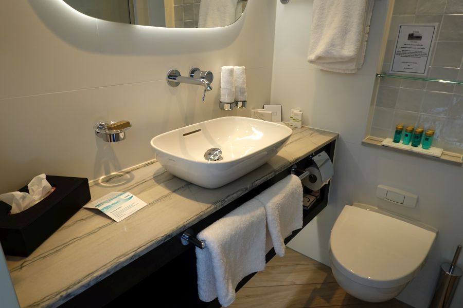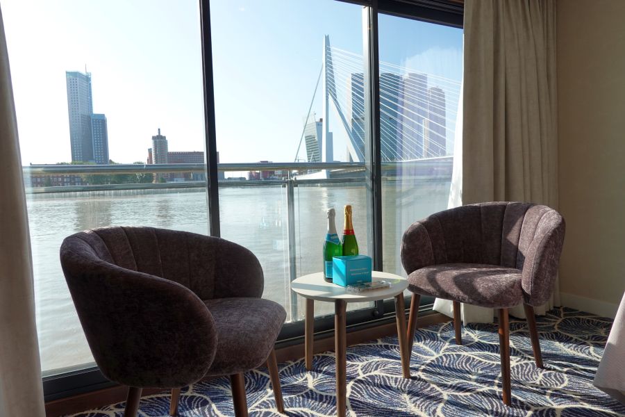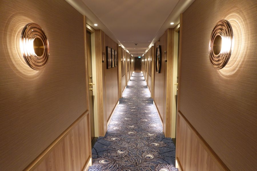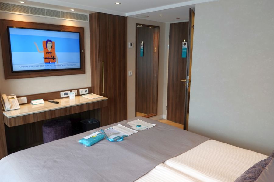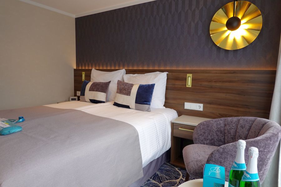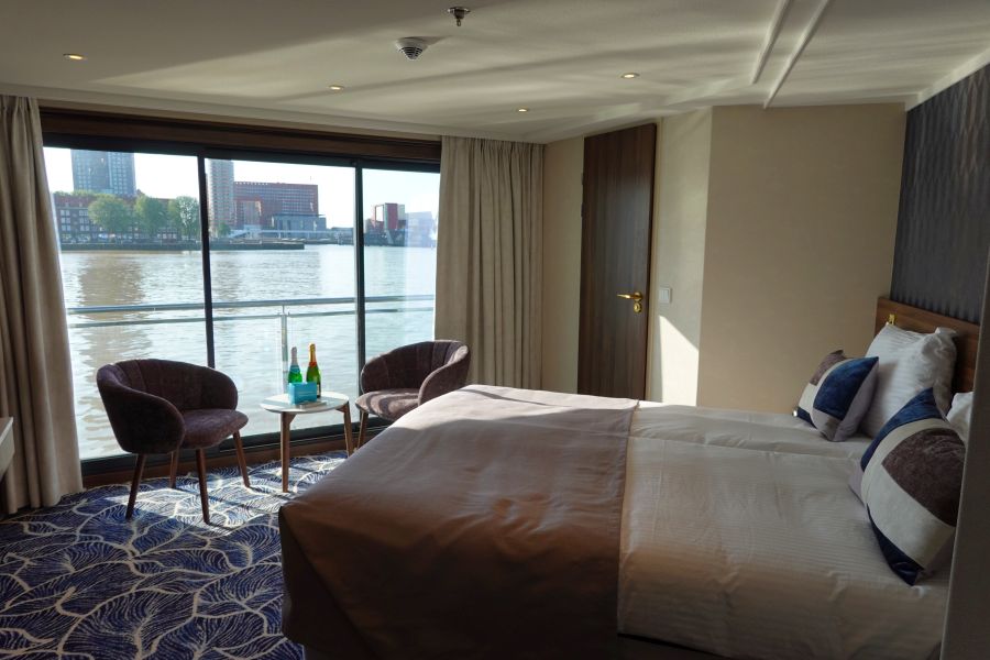 De Annika maakte, toen ik mee cruiste, pas haar tweede reis! Het schip werd in 2020 al opgeleverd, maar vanwege de COVID-19 pandemie kon ze pas dit jaar ingezet worden. De doopmoeder Barbara Weyden, die al bijna 40 jaar voor Phoenix Reisen werkt, gaf het schip op 5 juli 2021 over aan de kapiteins Hermann Schuster en Marco van Gent. Daarna vertrok de Annika direct met gasten voor de eerste reis. Ik rook dus nog de heerlijk nieuwe vloerbedekking in de kamer en uiteraard zag het schip er spik en span uit. De Annika is een premium klasse *****schip en daarnaar was ik zeker benieuwd. Wat zou de luxe zijn aan boord zijn van dit 5 sterren schip?Smaakvol ingerichte hutten