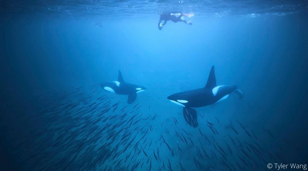 Tijdens de speciale snorkelreizen is het voornaamste doel de orka’s en bultruggen onder water observeren terwijl ze op jacht zijn naar haring. De volledige snorkeluitrusting, van droogpak tot handschoenen en snorkel, is bij de reis inbegrepen en iedereen krijgt vooraf een gedegen introductie. Wanneer de gids beslist dat het veilig is om te gaan snorkelen ga je met een zodiac het water op. Op teken van de gids glij je vanaf de zodiac behoedzaam het koude water in voor een kijkje onder water. Neem dus zeker een go-pro of onderwater camera mee om je ontmoeting met deze imposante reuzen vast te leggen!