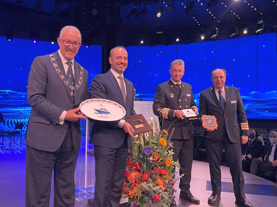 Vrijdagochtend heeft aan boord van het nieuwe vlaggenschip van Holland America Line, Rotterdam, de ‘Key & Plaque’ ceremonie plaatsgevonden. Dit feestelijke evenement vindt traditioneel plaats als een schip voor de eerste keer een haven aandoet, de zogenaamd Maiden Call.