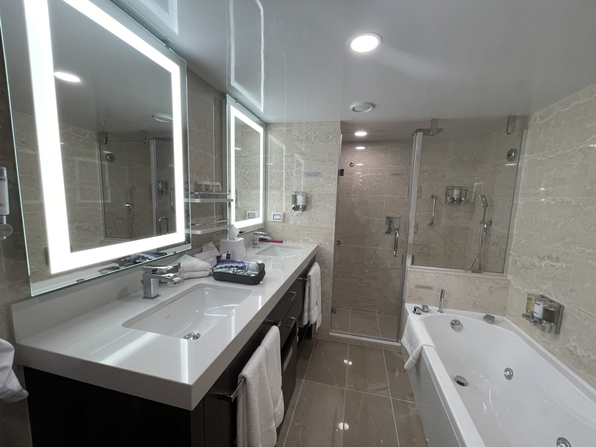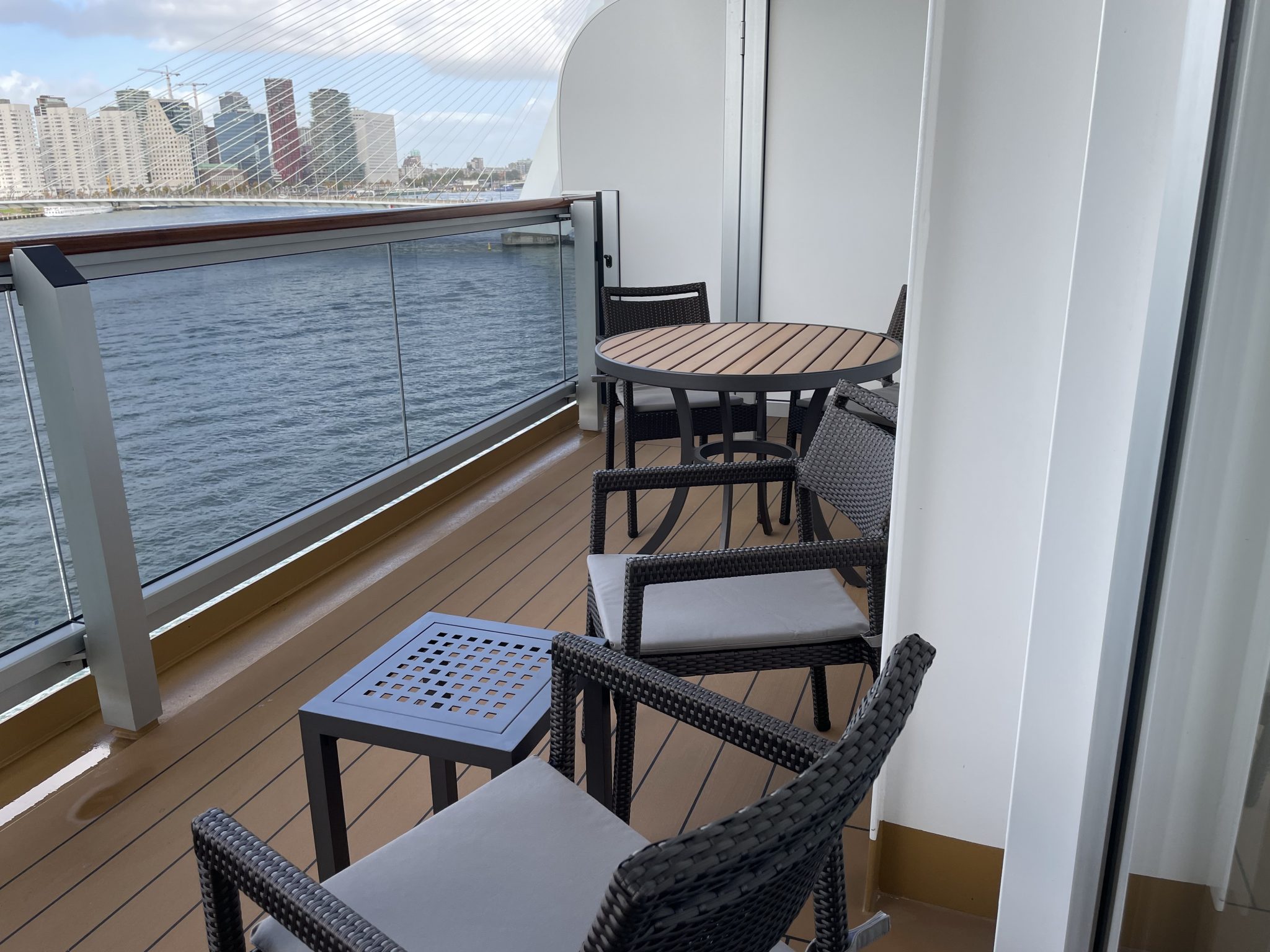 In vergelijking met de Signature suite biedt de Neptune suite naast meer ruimte ook meer luxere details waaronder een balkon met zitgelegenheid voor 6 personen. Je hebt ook de beschikking over premium badjassen, een nespresso apparaat, gratis wasservice en een Bose audio bluetooth systeem.