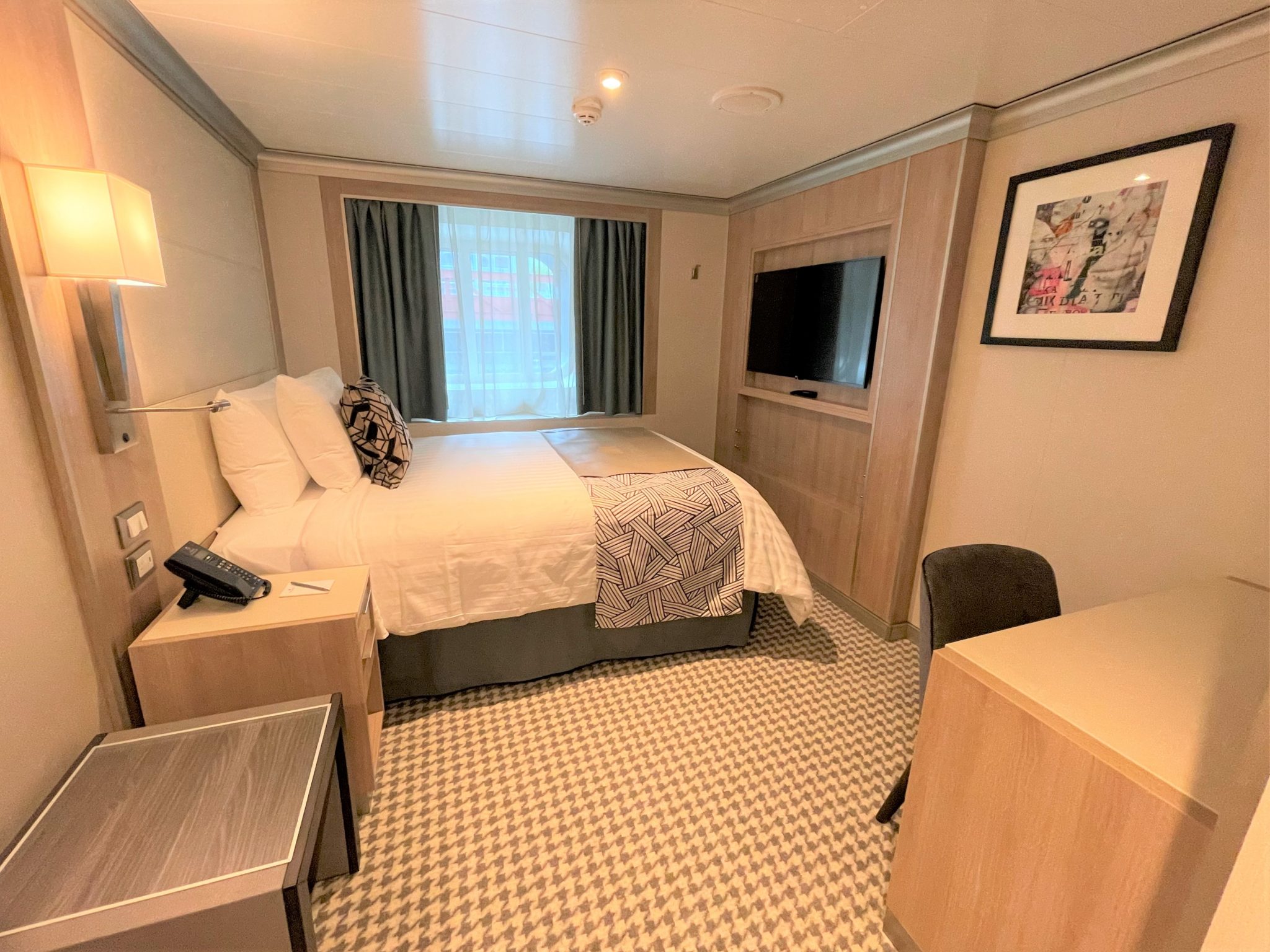 Een hit op de andere twee schepen in de Pinnacle klasse zijn de de solo buitenhutten, speciaal voor de cruisereizigers die alleen reizen. De hutten zijn met 12-16 vierkante meter iets kleiner dan de standaard buitenhut, maar bieden afgezien van het ontbrekende tweezitsbankje wel dezelfde voorzieningen. De 12 solo buitenhutten bevinden zich allen op dek 1 aan de voorkant van het schip. Vanwege het geringe aantal is het verstandig om tijdig te boeken. Hieronder zie je hut nr. 1005.