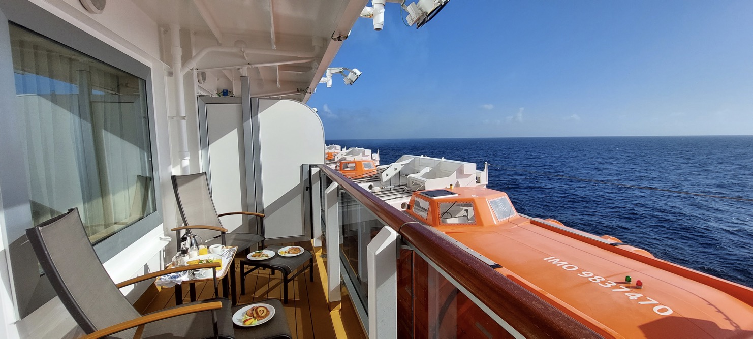 Hieronder zie je een mooie balkonhut (no. 4044), met dubbel breed balkon, op dek 4. Deze heeft officieel een belemmerd zicht, maar dat wordt helemaal goedgemaakt door het brede balkon. (Dank aan Annemarie voor het doorsturen!)
