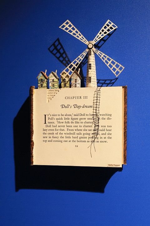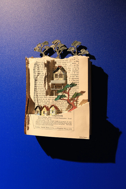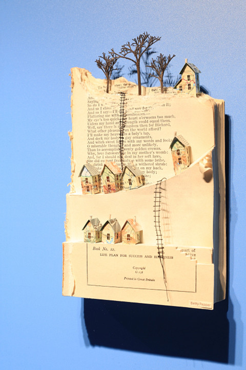 - De kleinste werken zijn van Betty Pepper, die boeken gebruikt en ingewikkelde details en scènes van oude kaarten toevoegt. Ze zijn te zien in het voorste trappenhuis tussen dek 7 en 8.