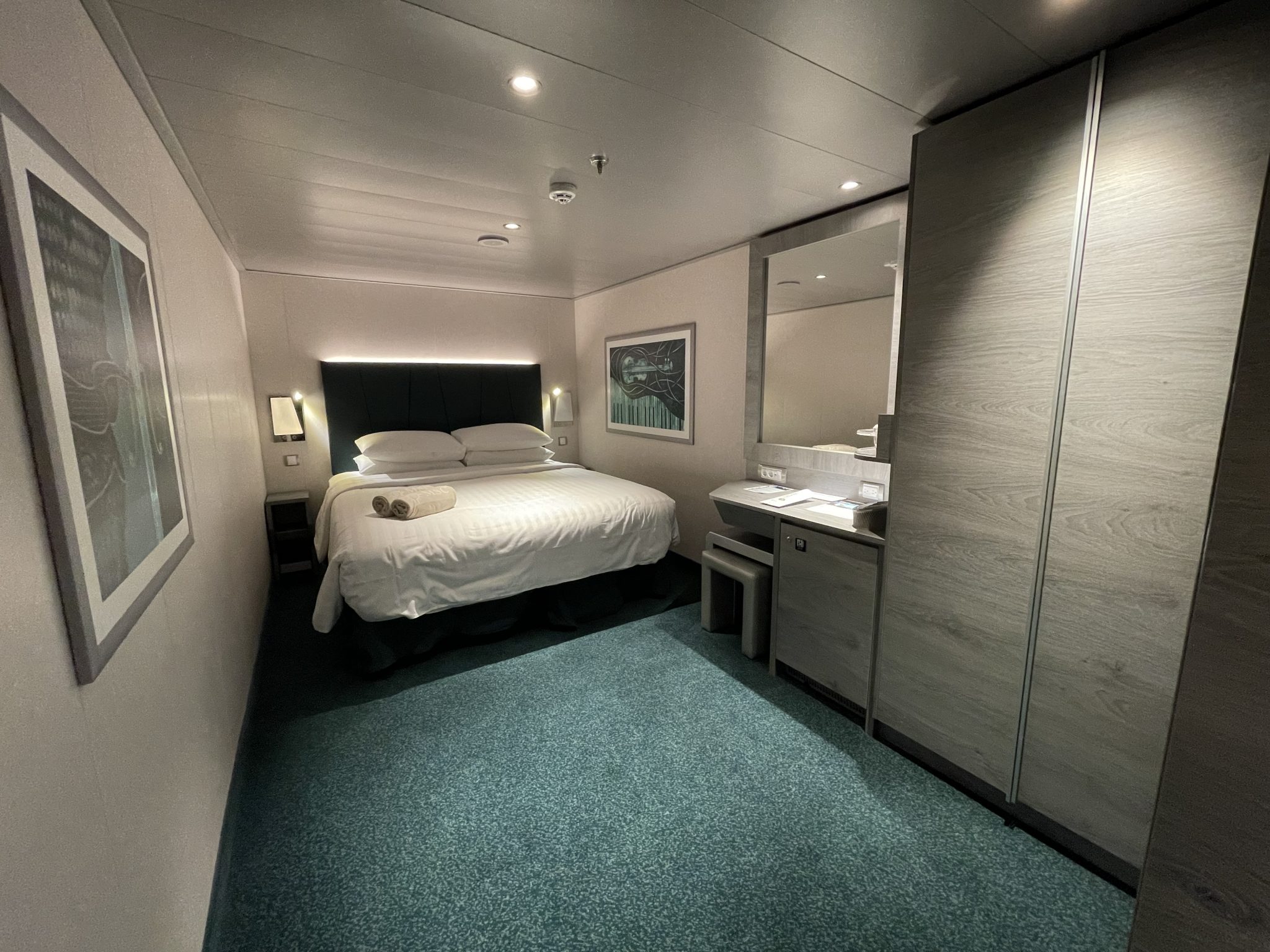 De reguliere binnenhut is 17 vierkante meter. Deze binnenhut heeft alle standaardfaciliteiten behalve een bankje. Er is een krukje om te zitten en een soort van tafeltje. Op het kleine bureau/kaptafel zijn 2 stopcontacten met een usb aansluiting beschikbaar. Daarnaast nog een buitenlandse stekkerdoos. Een minibar (toeslag) bevindt zich onder het bureautje. De kledingkast staat naast het bureau en heeft twee hanggedeeltes. Er zijn twee lades en een kluisje in beschikbaar.