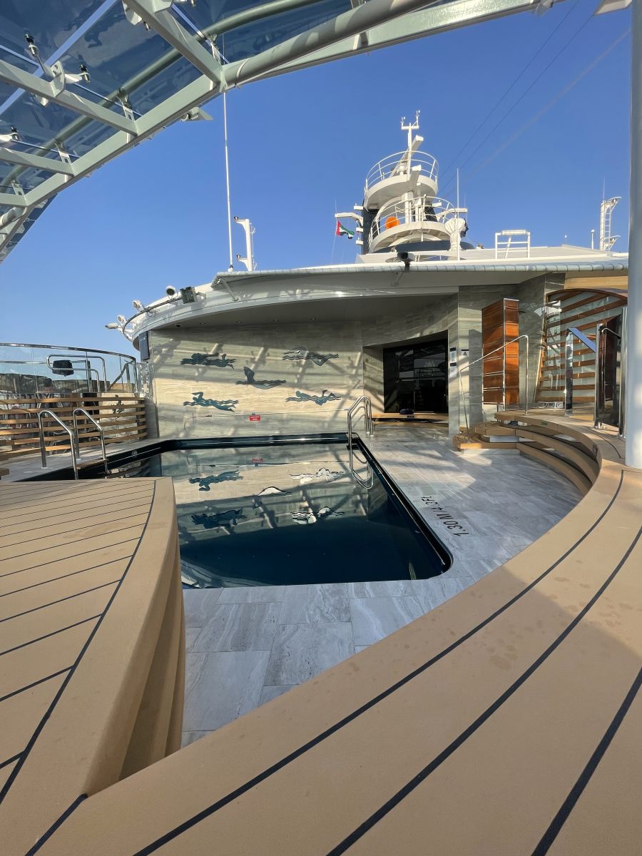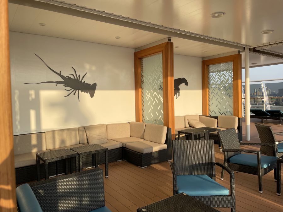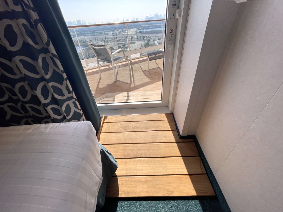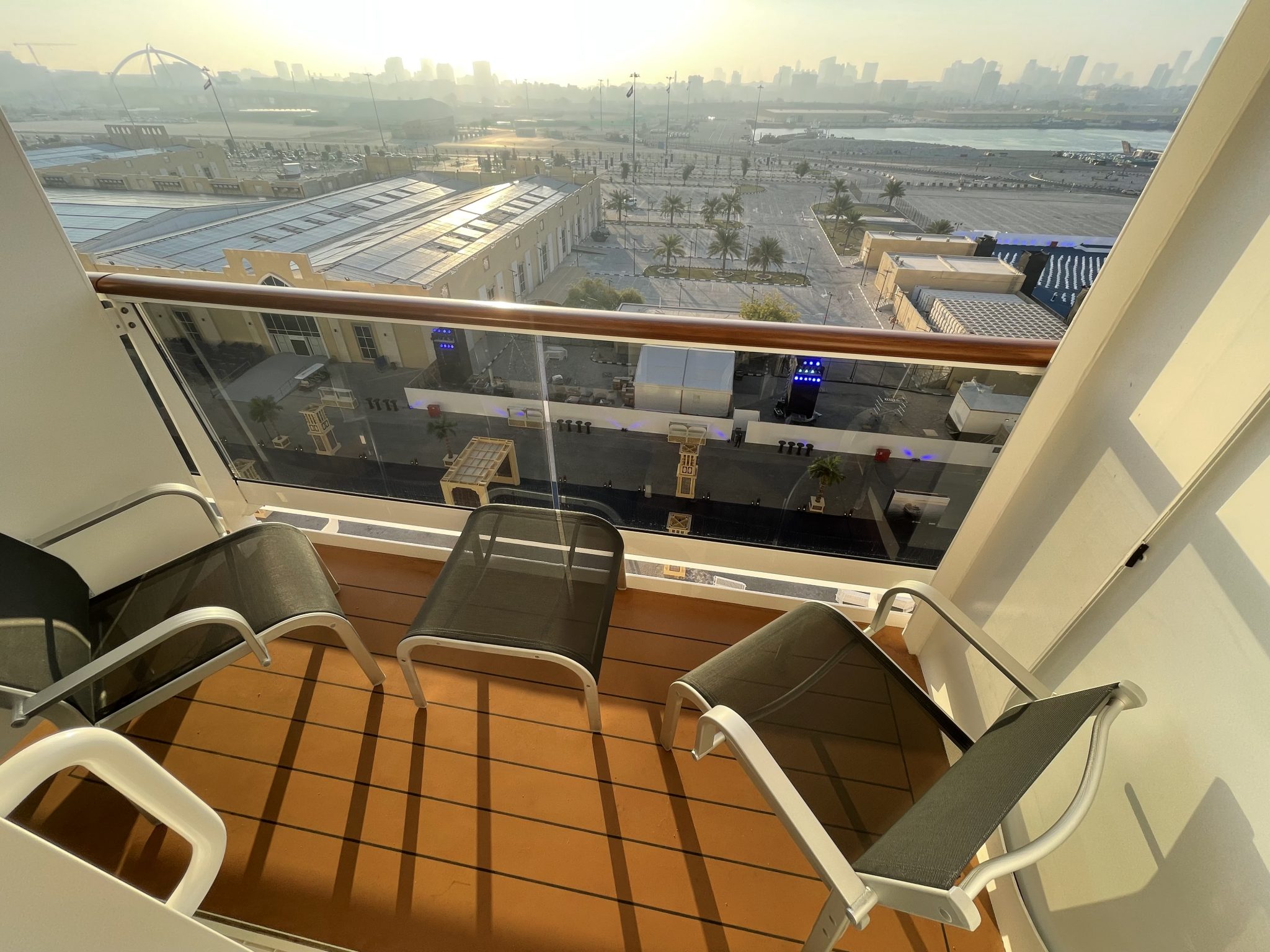 Ik wil je wel een tip meegeven als je een zonaanbidder bent: vermijd zeker de bovenste 2 dekken die in een inham gelegen zijn, voor én achter. De schaduw van het overhangende dek daarboven, is immens. Je hebt vrijwel geen zon op deze balkons.