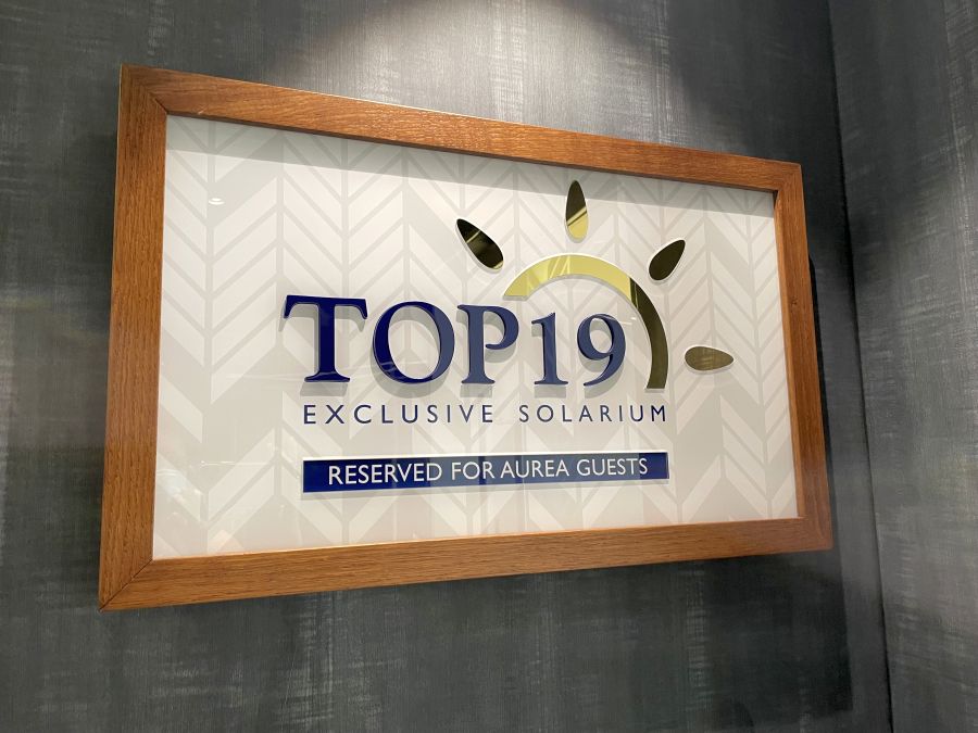 Het zonnedek dat speciaal voor Aurea gasten (die een Aurea hut of Aurea Suite geboekt hebben) gereserveerd is, heet Top 19. Je vindt er loungebanken, veel zonnebedden en een whirlpool met fantastisch uitzicht.