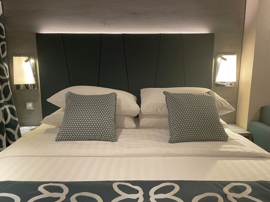 De MSC Virtuosa biedt 10 soorten hutten aan, waarvan Miriam zelf 7 soorten heeft kunnen bekijken voor je; een binnenhut studio, binnenhut voor mindervaliden & reguliere binnenhut, een balkonhut voor families en 3 andere soorten balkonhutten. Even wat indrukwekkende cijfers: de Virtuosa biedt in totaal 2421 kamers aan waarvan 64 een eigen whirlpool hebben 🙂 er zijn 8 hutten met twee verdiepingen, 160 buitenhutten, 755 binnenhutten, 1322 kamers met een balkon waaronder 190 familiehutten, 34 ‘gewone’ suites, 60 kamers voor mindervaliden in vrijwel iedere categorie en 95 suites in de MSC Yacht Club.