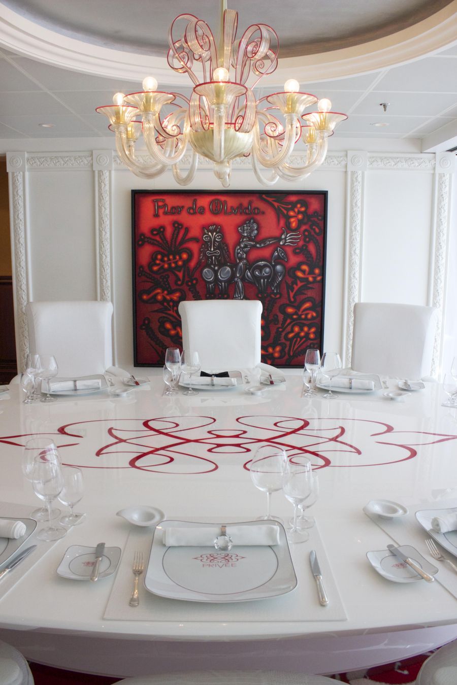 Privée biedt de meest exclusieve privédinerervaring op zee en kan worden gereserveerd voor een gezelschap van maximaal tien bevoorrechte gasten per avond. Weelderig gedecoreerd met grote witte leren zetels, een unieke, op maat gemaakte tafel door de beroemde architect Dakota Jackson, op Ferrari-rode vloerbedekking en verlicht door een gouden Venini-kroonluchter, verandert Privée elk aspect van dineren in een zintuiglijke ervaring.