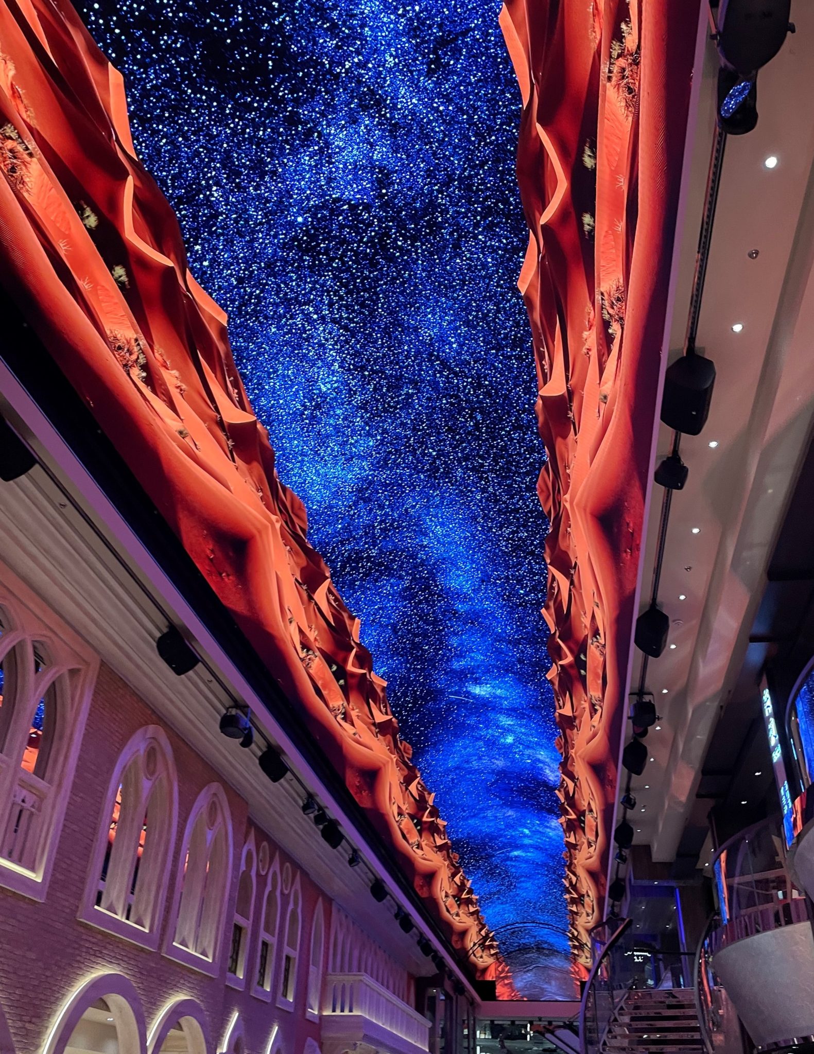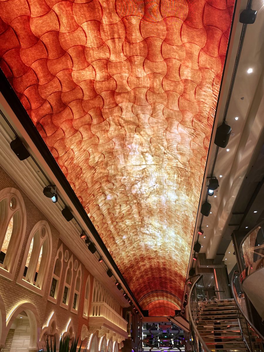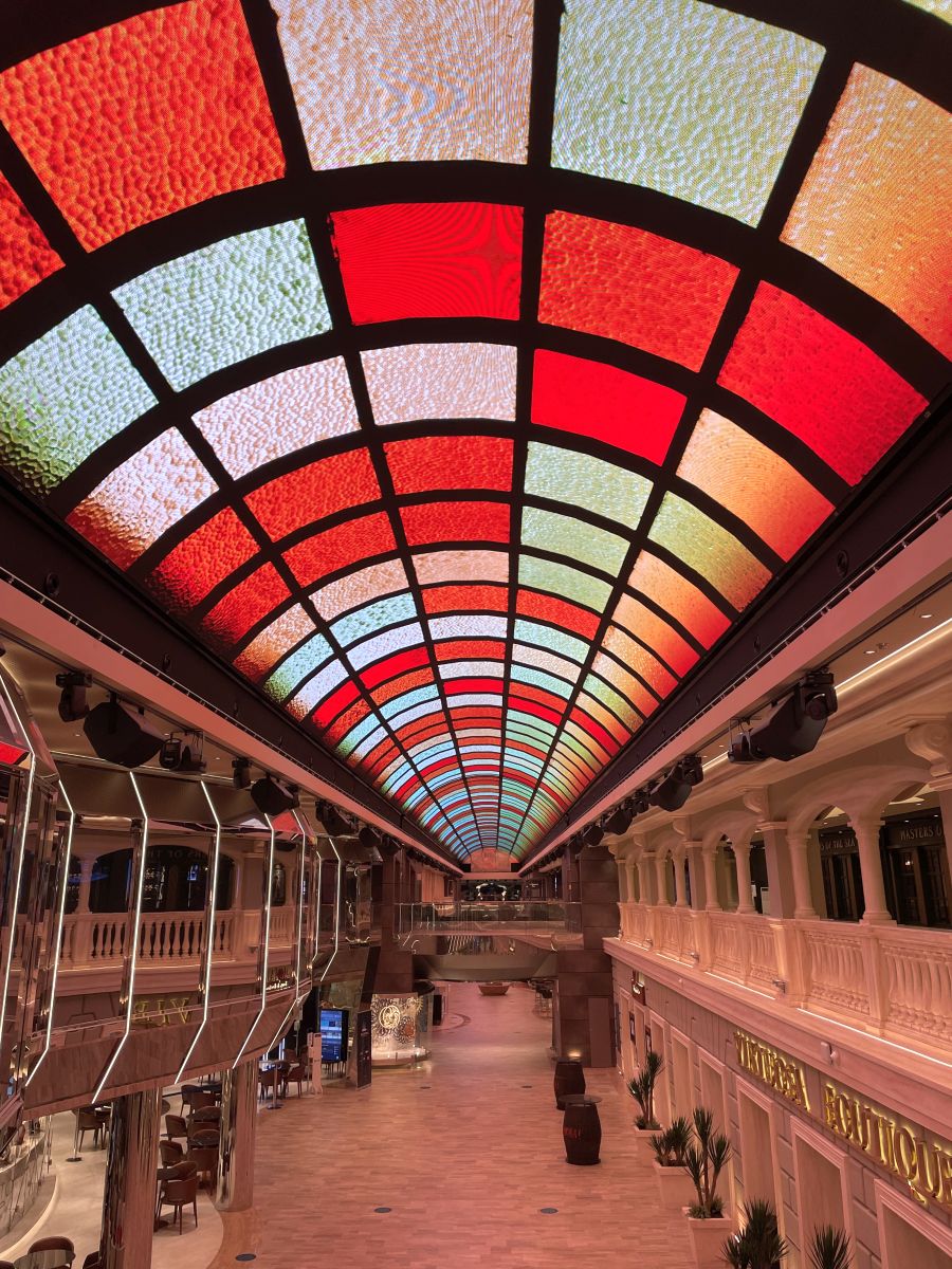 De meest indrukwekkende plekken binnen op de MSC Virtuosa zijn wederom de promenade, Galleria Virtuosa, en daaraan grenzend het atrium met de kristallen trappen. De promenade heeft een 80 meter lang LED plafond met voortdurende wisselende afbeeldingen. De twee ruimtes zijn het hart van het schip!