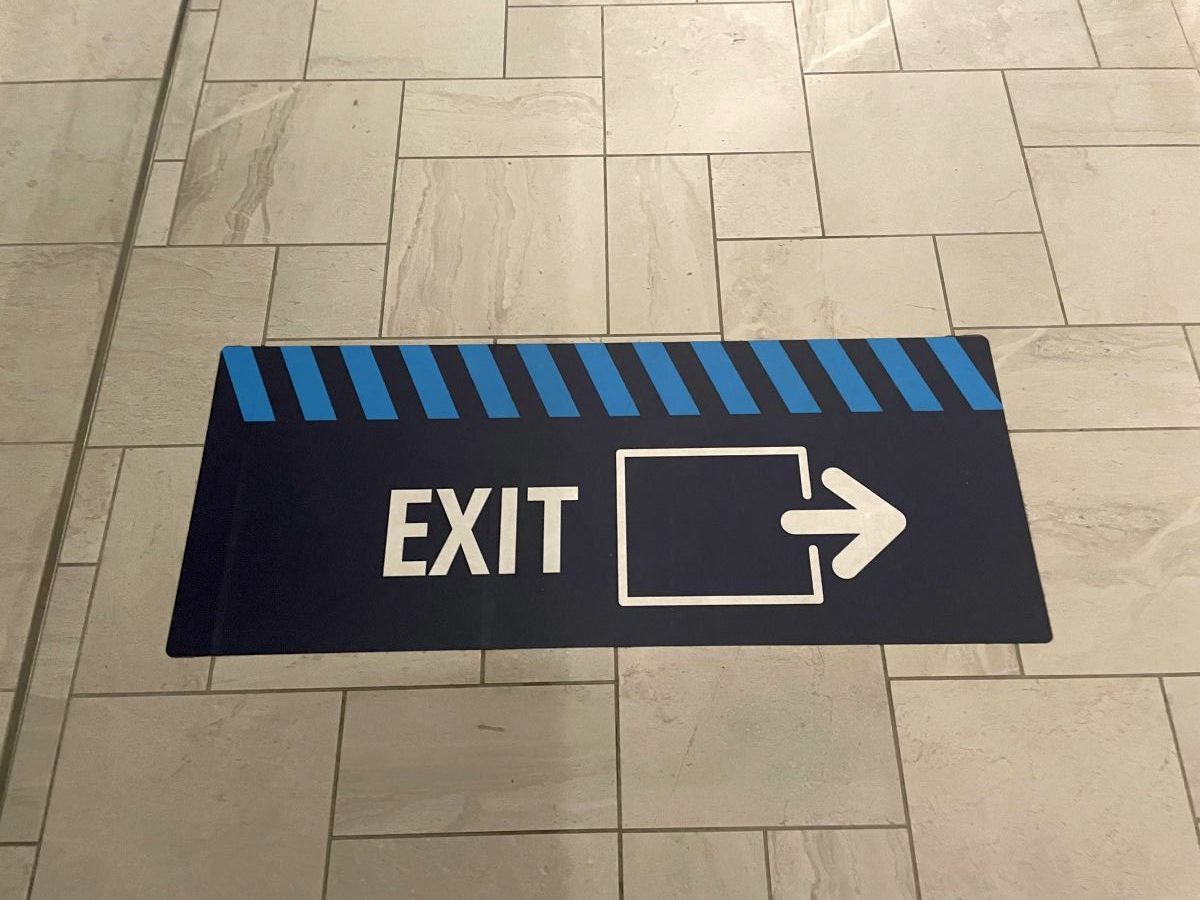 - afstand houden van elkaar, aangeduid door stickers op de grond