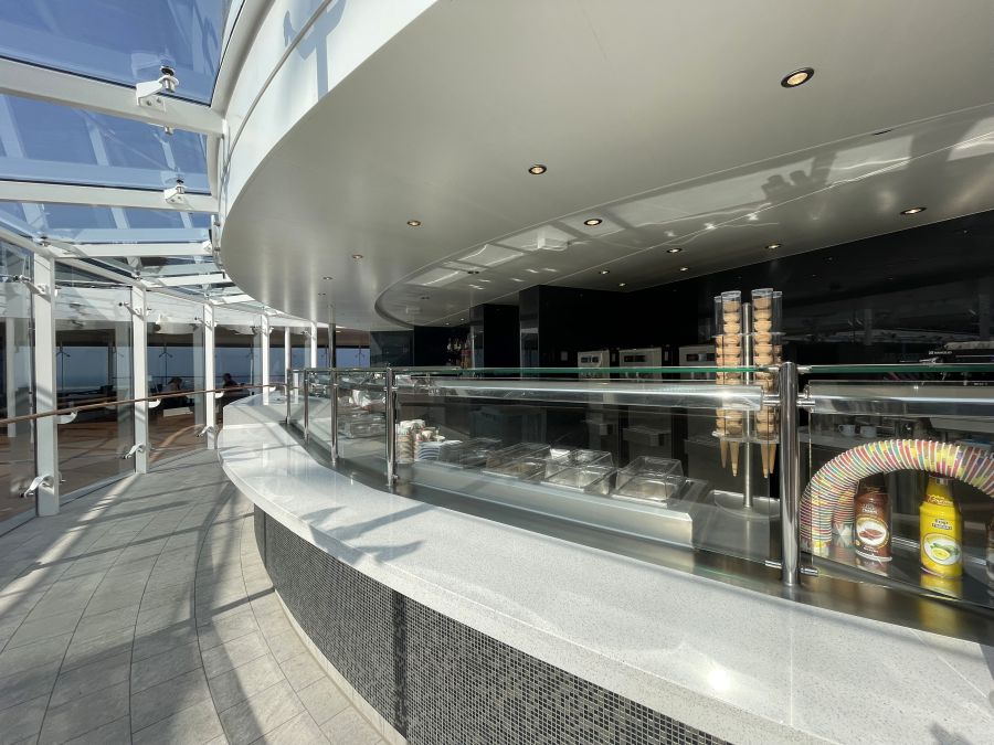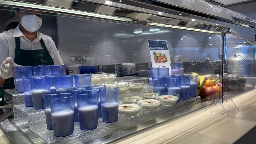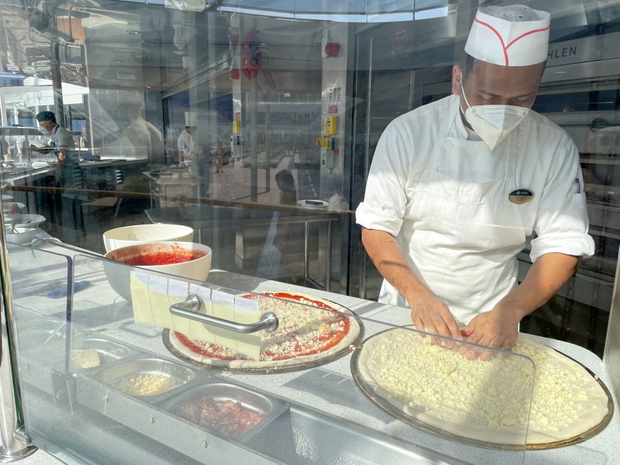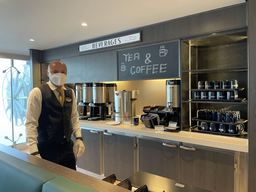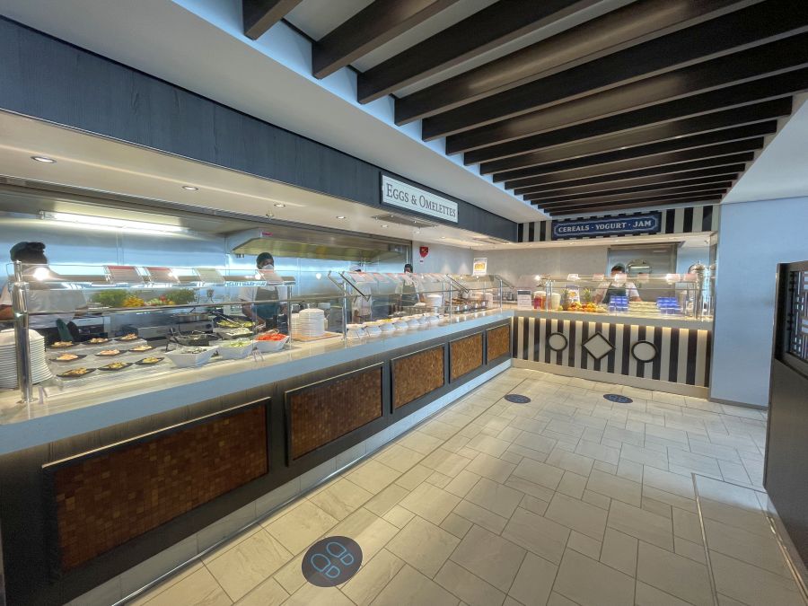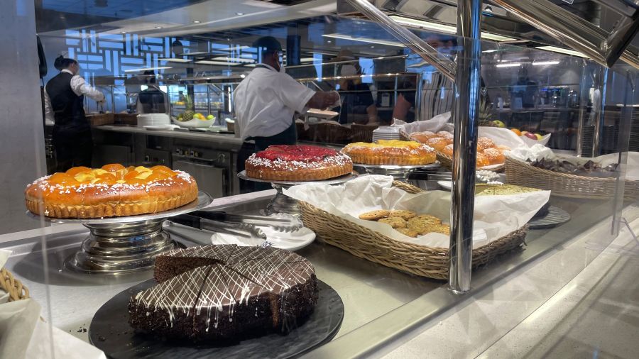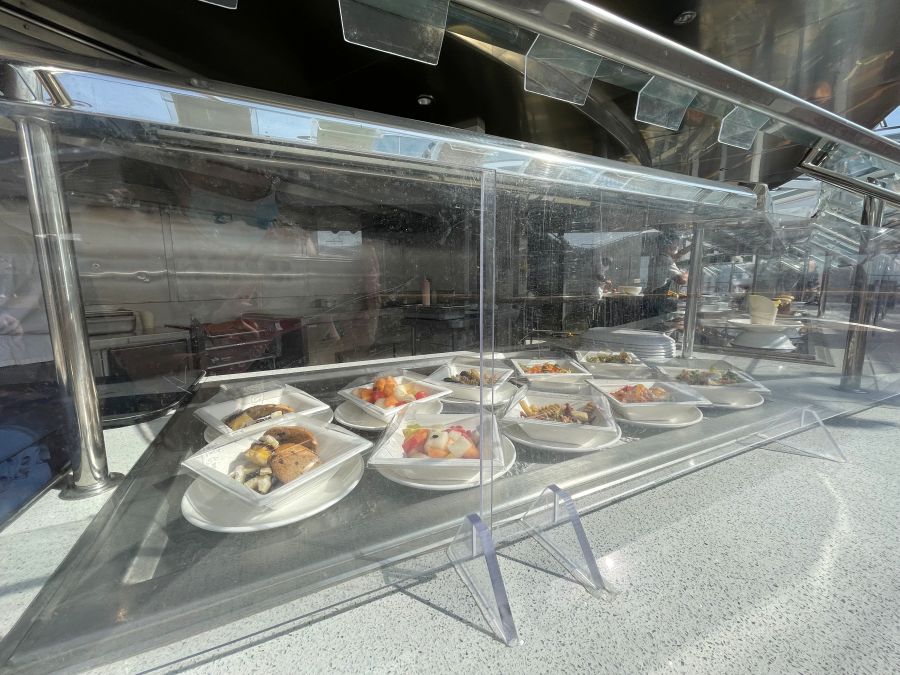 De hoofdrestaurants van de MSC Virtuosa heb ik eerder al laten zien in Aan boord van MSC Virtuosa: 7 verschillen met MSC Grandiosa. Het buffetrestaurant is op het schip wederom op dek 15, op hetzelfde dek als het hoofdzwembad. Marketplace is werkelijk enorm. Je vindt er diverse buffetten, een station waar ze verse mozzarella maken, verse pizza etc. Voor families met kinderen is er een aparte vleugel. Daar zullen bijvoorbeeld ook de kinderen uit de kinderclubs gaan eten met hun activiteitenbegeleiders. Overigens staan bij de koffie/thee apparaten nu altijd een MSC medewerker die je drankje klaar maakt. Ook alle gerechten worden bij het buffet aangegeven; je mag deze niet zelf pakken.