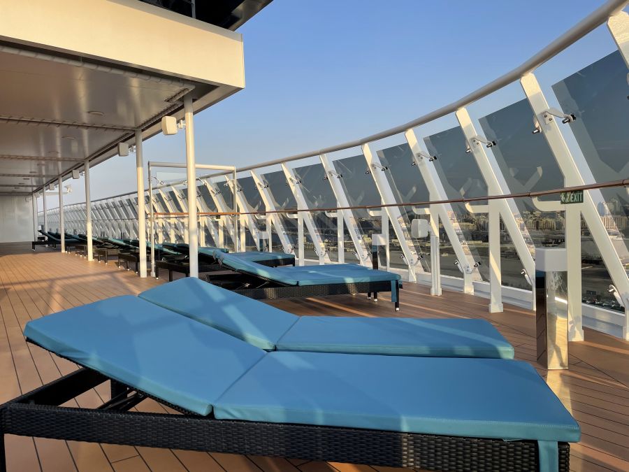 Zonnen kan je uiteraard bij één van de vele zwembaden. Daarnaast mogen Aurea gasten gebruik maken van een exclusief rustiger gedeelte op dek 19.