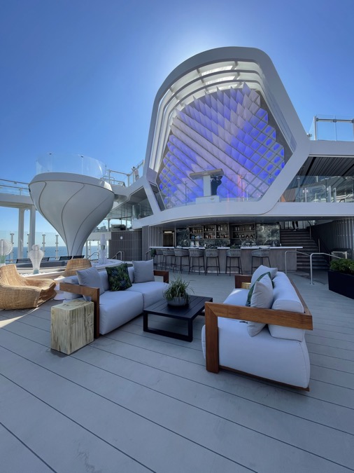 De Poolbar van Celebrity Beyond is net als alle andere poolbars, maar de zitjes maken dat je een echt resort gevoel krijgt: mooie ronde gezellige zithoeken en loungebanken.