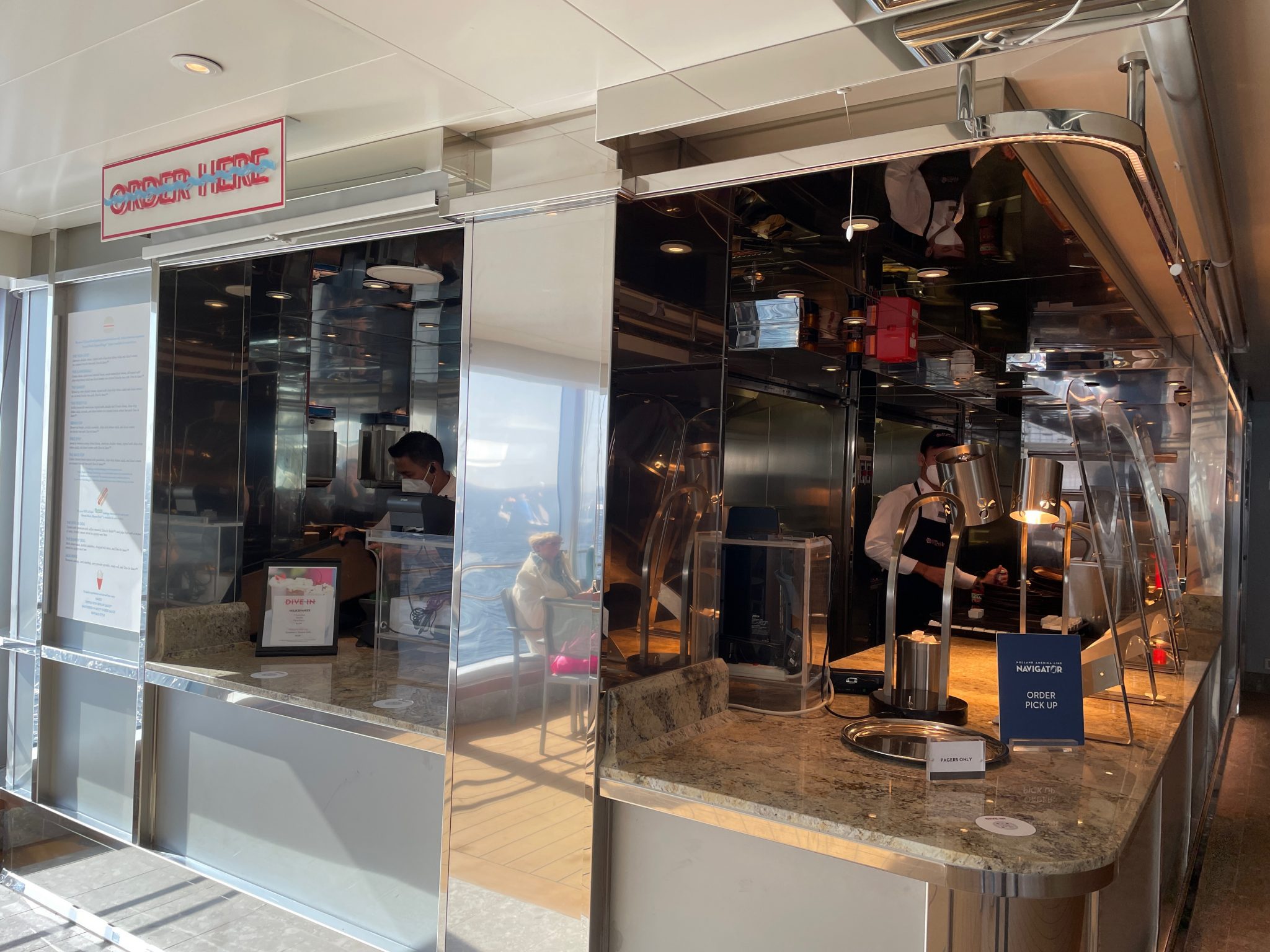 We dineren in de Main Dining Room, het tweedeks hoge hoofdrestaurant. Omdat we vrije inloop hebben, krijgen we een plekje op de ‘begane grond’, prachtig in het midden. We genieten volop van de uitstekende snelle service voordat we een feestje gaan vieren!