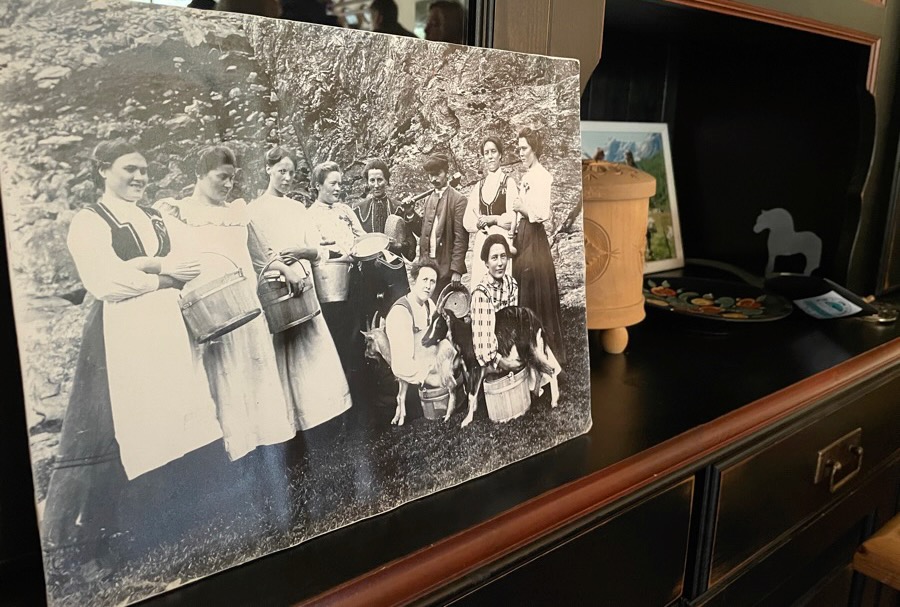 Ditmaal bezoeken we in de middag een lokale geitenboerderij, in het volgende dal gelegen in het plaatsje Norddal. We hebben nog niet het geluk dat de geiten in de zomerboerderij zijn. Wij zijn dus te gast op de winterboerderij. Wel zien we wat kleine geitjes ronddartelen die voor het eerst genieten van de buitenlucht. Na uitleg over het maken van kaas door de boerin Ashild, mogen we proeven van onder andere karamelkaas snoepjes!