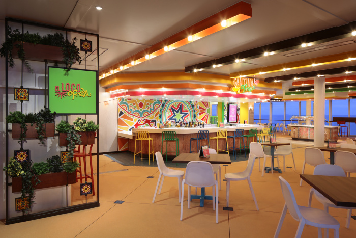 Een nieuwe bar op dek 16 van de Wonder of the Seas is de Cantina Fresca, die hoort bij restaurant El Loco Fresh (inclusief in de prijs). Op het menu staan een selectie van aquas frescas, margarita’s en andere Mexicaanse drankjes. Een perfecte combi met de de snelle Mexicaanse lekkernijen zoals taco’s, burrito’s en quesadilla’s die verkrijgbaar zijn bij El Loco Fresh. De bar ligt ook nabij het Sportdek.