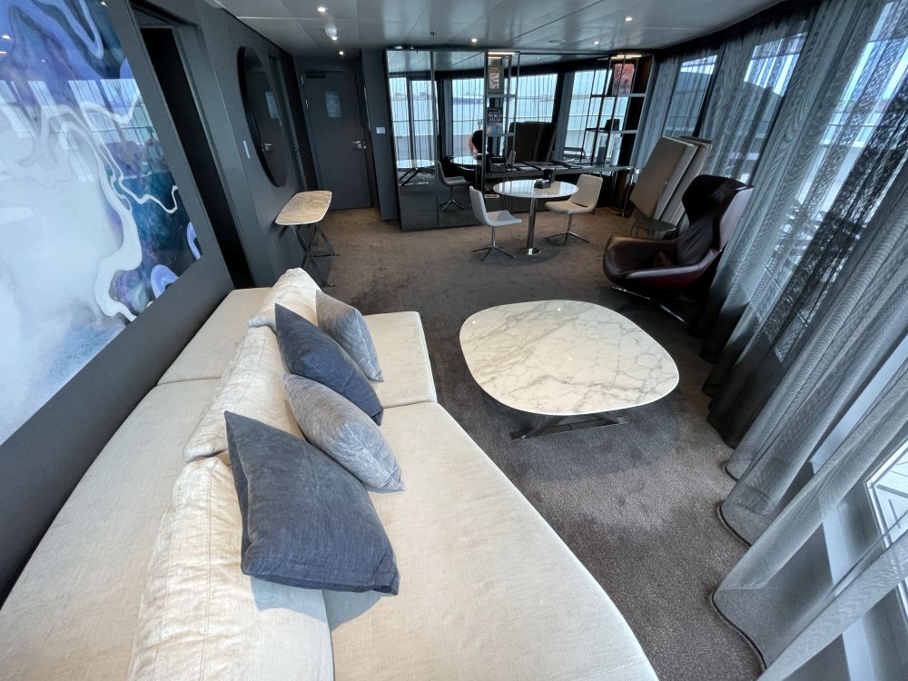 De twee grootste suites op de Scenic Eclipse zijn de Owners Penthouse Suites. Ze liggen beide op dek 9 aan de boeg van het schip en bieden een fantastisch uitzicht naar voren. Het zijn imposante verblijven met 195 m2 aan leefruimte met o.a. een privélounge, een eetkamer, een zeer ruime badkamer en een groot buitenterras met tafel, comfortabele bankjes en privé-bubbelbad.