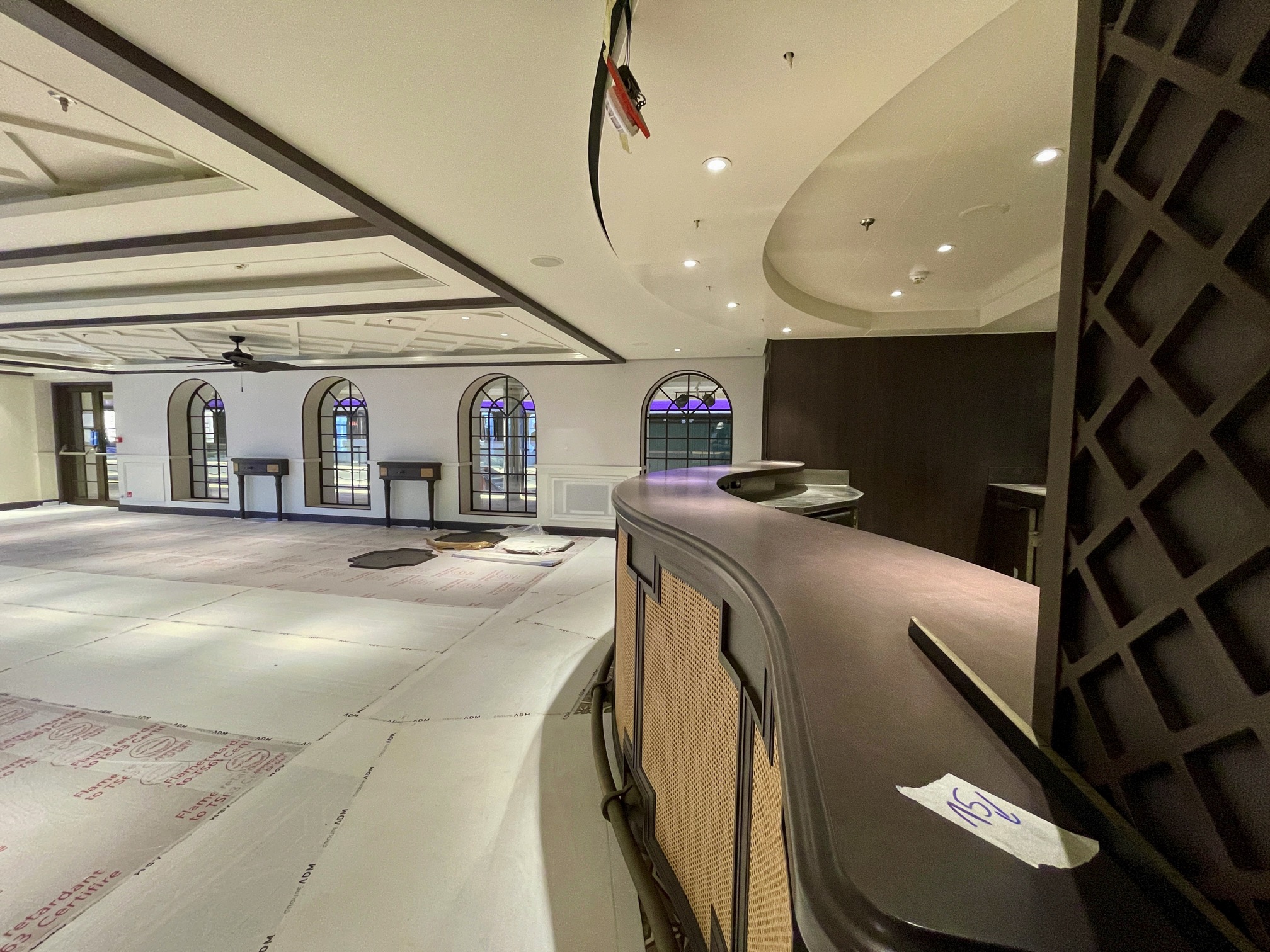 Richting de voorkant van de promenade ligt het nieuwe buffetrestaurant Luna Park Pizza & Burger, inclusief in de cruiseprijs. Het is een informeel buffet met klassieke Amerikaanse en Italiaanse gerechten. Het ligt direct aan de overkant van het multifunctionele Luna Park: een ruimte dat voor o.a. shows, feestavonden en meer, gebruikt kan worden. Ik bezocht enkele bars die aan de Galleria liggen: de sappenbar Zest, theehuis Raj Polo en de pub Masters of the Sea. De laatste twee zijn al ver met inrichting: bij de Masters of the Sea is een mooi 2-deks hoge ruimte gecreëerd met op het bovenste dek The Gin Project, waar je allerlei soorten gin vindt en waar workshops gegeven worden om je eigen gin te mixen.