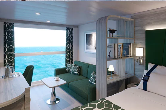 Ook nieuw zijn de balkonhutten die uitkijken op de promenade. Ze hebben een verrassend ruime indeling en zijn breder opgezet dan reguliere balkonhutten. De balkons zijn uiteraard ook breed en hebben, afhankelijk van je locatie, een uitzicht op promenade en/of meer bij de achterkant een uitzicht op de zee.