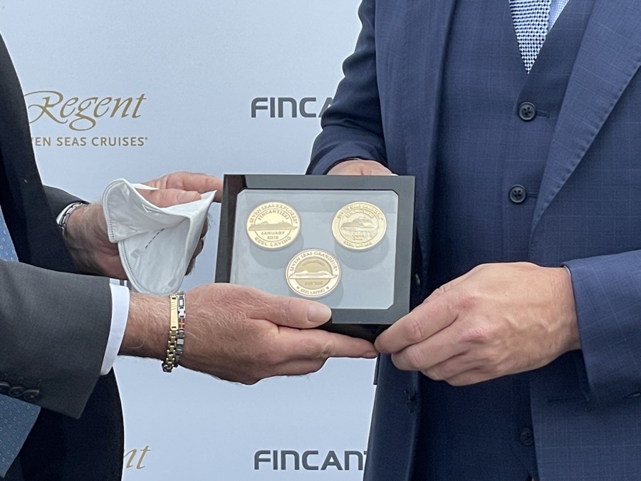 Miriam was op uitnodiging bij de kiellegging en muntceremonie van het nieuwste schip van Regent Seven Seas Cruises, de Seven Seas Grandeur, in het Italiaanse Ancona.